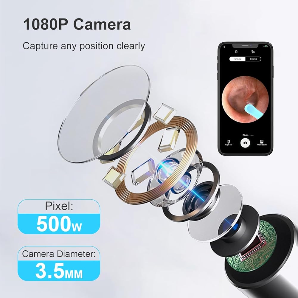 • كاميرا 1080P: إزالة شمع الحرب بكاميرا 1080P مقاومة للماء. اجعل رؤيتك أكثر وضوحا. تساعدك على إزالة شمع الأذن بشكل أسرع وأكثر دقة.