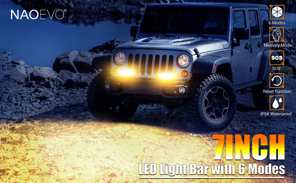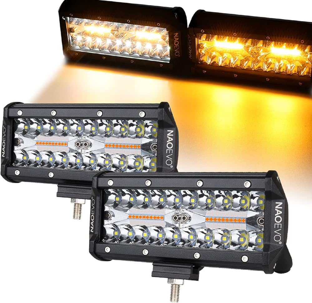 NAOEVO 7 بوصات 240 وات مصابيح LED باللون الأبيض الكهرماني، 6 أوضاع مع وظيفة الذاكرة، شريط إضاءة ستروب بقعة الفيضانات، 24000 لومن مقاوم للماء على الطرق الوعرة، ضوء عمل للقيادة على الطرق الوعرة لقارب الشاحنة، قطعتان