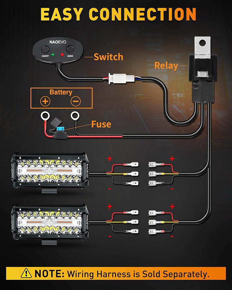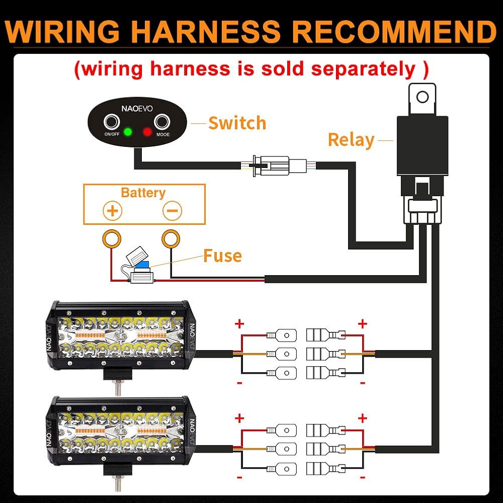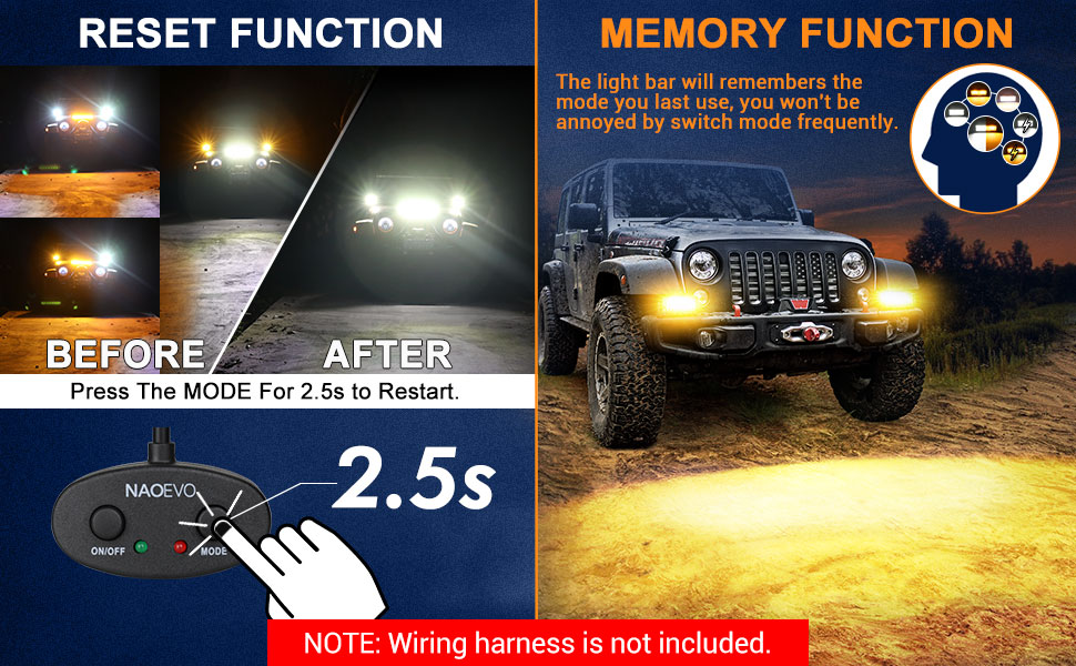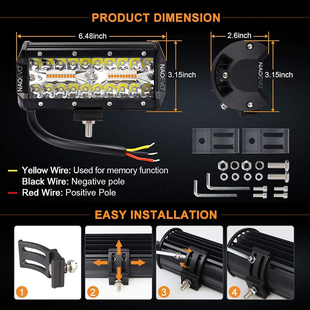 [6 أوضاع] - 6 أوضاع فريدة، تنظيم الوضع بدوره عن طريق مفتاح الأضواء (أبيض/كهرمان/أبيض وكهرمان/ستوب أبيض/ستوب كهرماني/ ستوب أبيض وكهرماني). تتمتع المصابيح الكهرمانية باختراق قوي، وهي رائعة كضوء تحذير أو مصابيح ضباب أو غيرها من حالات الرؤية المنخفضة. يمكن استخدام الضوء الأبيض كمصابيح قيادة أو مصابيح عمل. ابحث عن "B08M5XNVTD" لشراء سرج الأسلاك ذو الإصدار المطور من NAOEVO، واستخدمه لتبديل الأوضاع المختلفة ووظيفة الذاكرة.