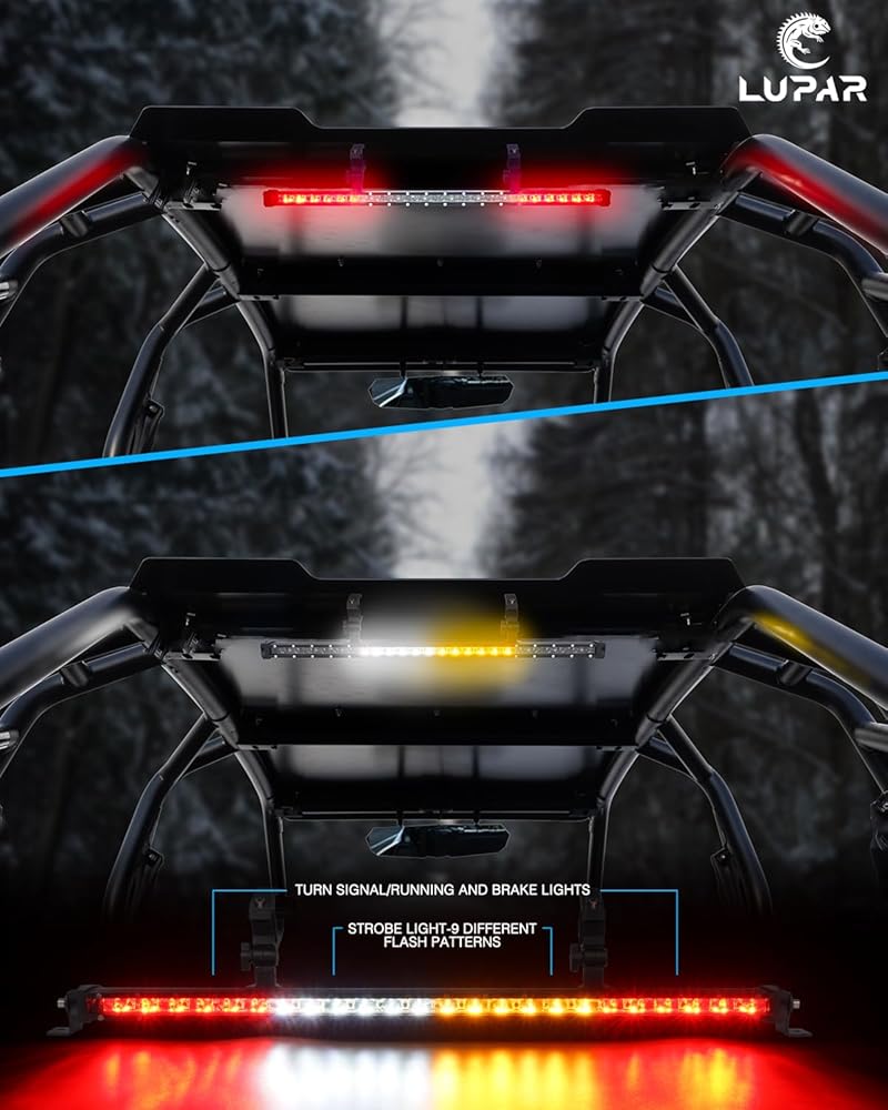 أوضاع قوية متعددة الاستخدامات ومتعددة الوظائف - مع 9 أوضاع وميض ستروب، بما في ذلك وظيفة الفرامل والجري والعكس وإضاءة إشارة الانعطاف، يوفر شريط الضوء الخلفي للمطاردة خيارات إضاءة متعددة لمختلف سيناريوهات الطرق الوعرة. قم بإضاءة الطريق وإيصال نواياك بشكل فعال، مما يعزز السلامة والأناقة.