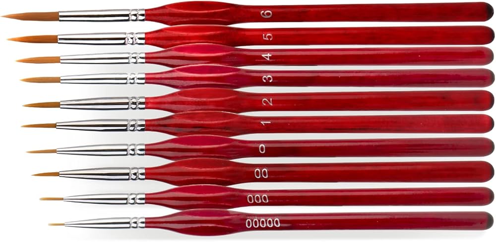 Yoseng 10 قطع فرشاة طلاء دقيقة التفاصيل مجموعة فرش رسم مصغرة مجموعة فرش دهانات صغيرة للأكريليك والألوان المائية والزيت والوجه والأظافر ورسم نموذج مقياس ورسم الخط (أحمر)