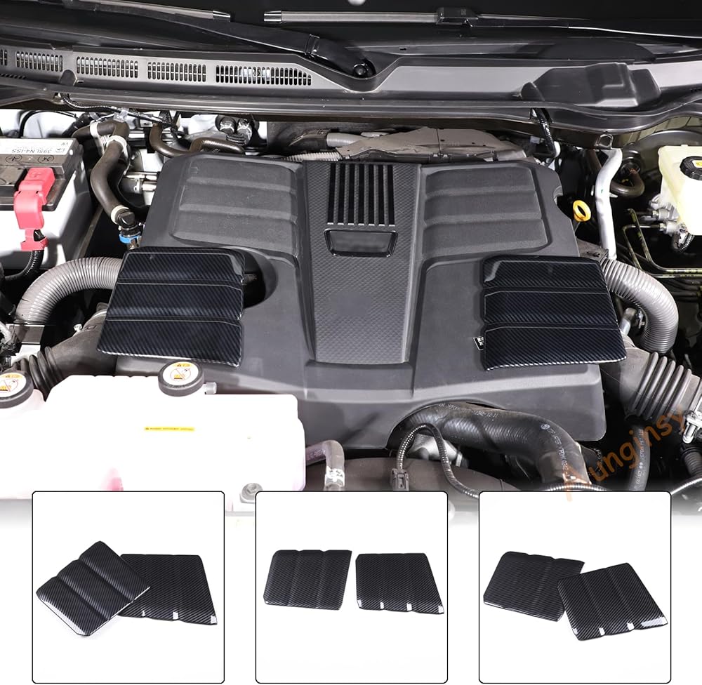 🚙الجمال والحماية: يحمي الغطاء الزخرفي للوحة حماية المحرك بشكل فعال لوحة حماية محرك سيارتك من الخدوش والتآكل ويمنع الشيخوخة. تم تشكيله بشكل صحيح، بدون حواف أو فجوات خشنة، ويمكنه تغطية الخدوش الموجودة في منطقة التثبيت، وتفتيح وتحسين المظهر الرتيب لمنطقة التثبيت، وهو ملحق مثالي لسيارتك.