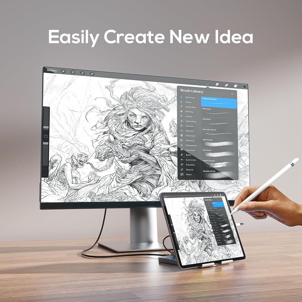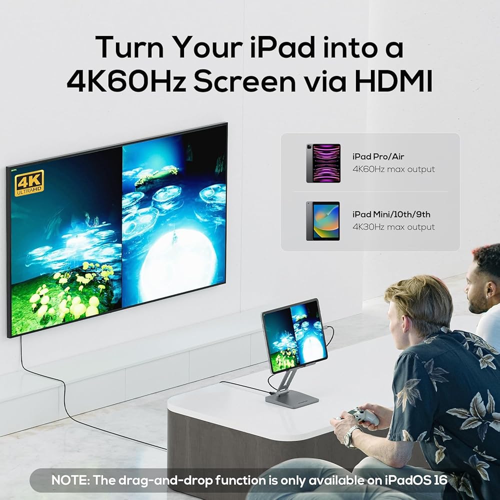 【4K@60 هرتز SST&MST】تدعم قاعدة توصيل iPad PULWTOP أوضاع النسخ المتطابق وMST تحت نظام التشغيل Mac OS وWindows. اتصل بشاشة خارجية تصل إلى 4K@60 هرتز عبر HDMI. استمتع بصور واضحة أثناء العمل أو مشاهدة المحتوى.