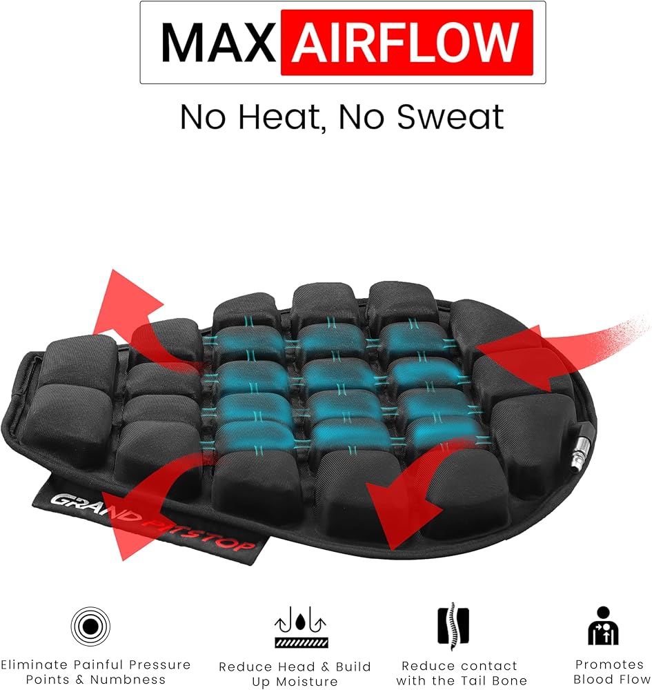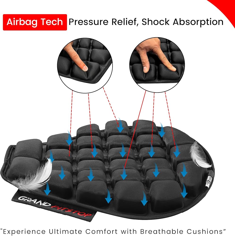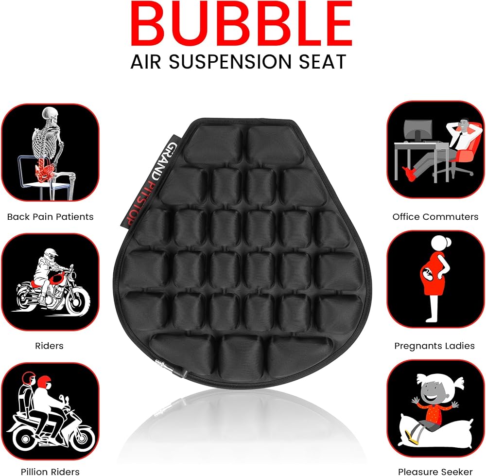 تتميز وسادة المقعد الهوائية بتصميم فريد من نوعه مع وسادتين هوائيتين قابلتين للنفخ، ويمكن تعديلهما حسب النعومة أو الصلابة المطلوبة لتناسب شكل جسم الراكب.