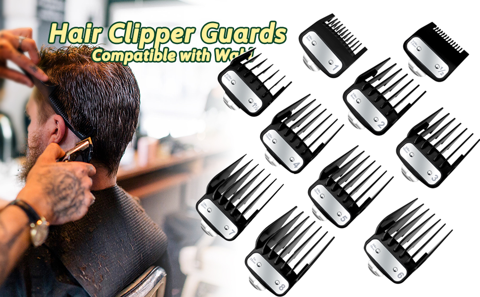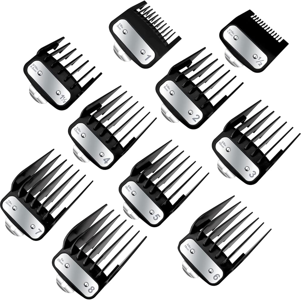 واقيات قص الشعر الممتازة مناسبة لقص الشعر، أمشاط احترافية لقص الشعر مع مشبك معدني، مجموعة 10 واقيات لأطوال القطع متوافقة مع معظم ماكينات قص الشعر من Wahl