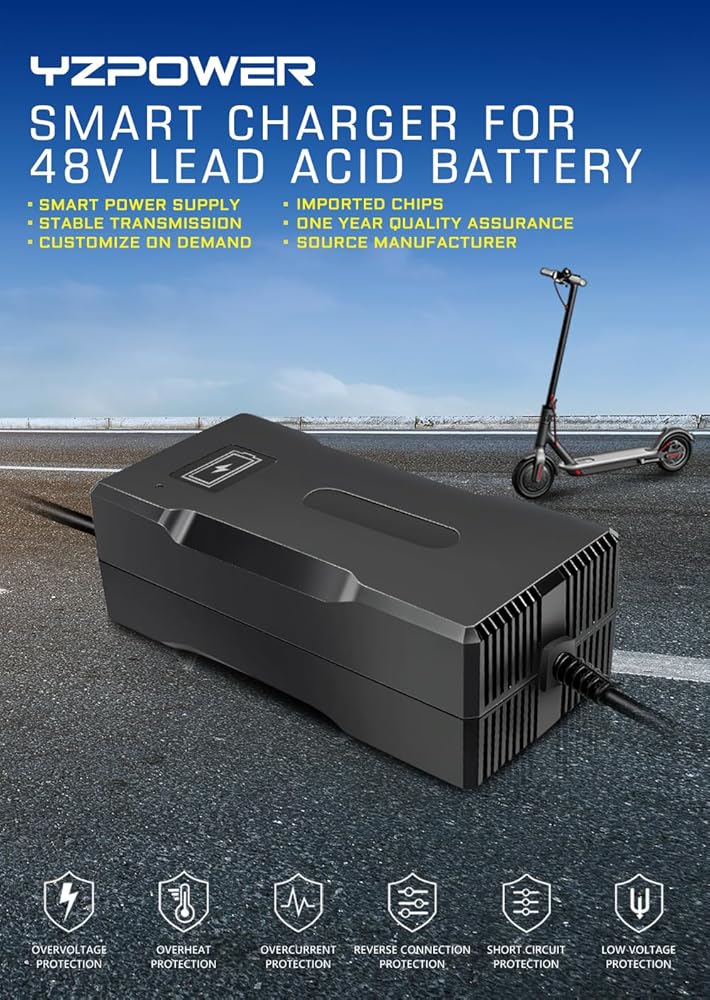 شاحن بطارية YZPOWER 48 فولت 20 أمبير في الساعة من حمض الرصاص للدراجة الكهربائية، شاحن بديل 48 فولت للسكوتر الكهربائي للكرسي المتحرك 3 دبابيس