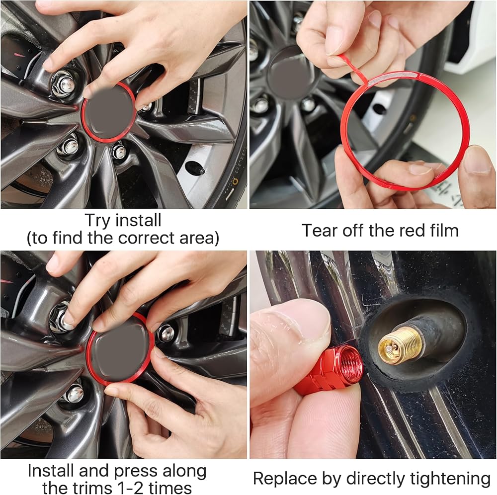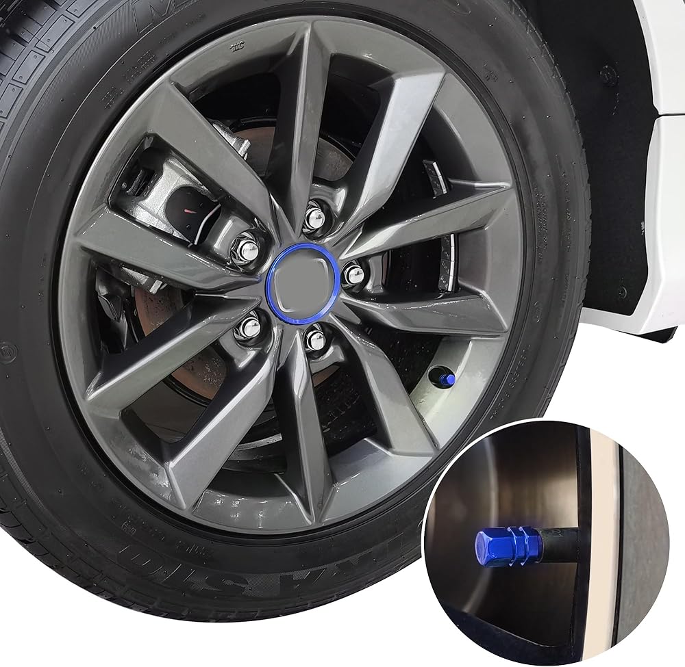 العبوة: 4 قطع من حلقات تزيين مركز العجلة و4 أغطية جذعية للصمام