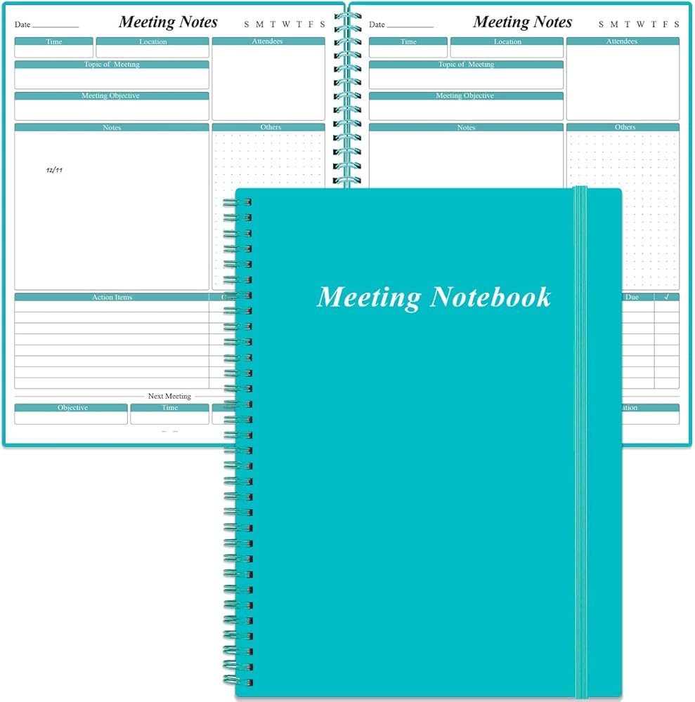 حجم كبير - يبلغ حجم دفاتر الاجتماعات هذه 8.5 بوصة × 11 بوصة، وتحتوي على غرفة كتابة كبيرة بما يكفي لمساعدتك في اجتماع المشروع وتنظيم جدول أعمالك. صغيرة بما يكفي لتناسب حقيبتك أو محفظتك.