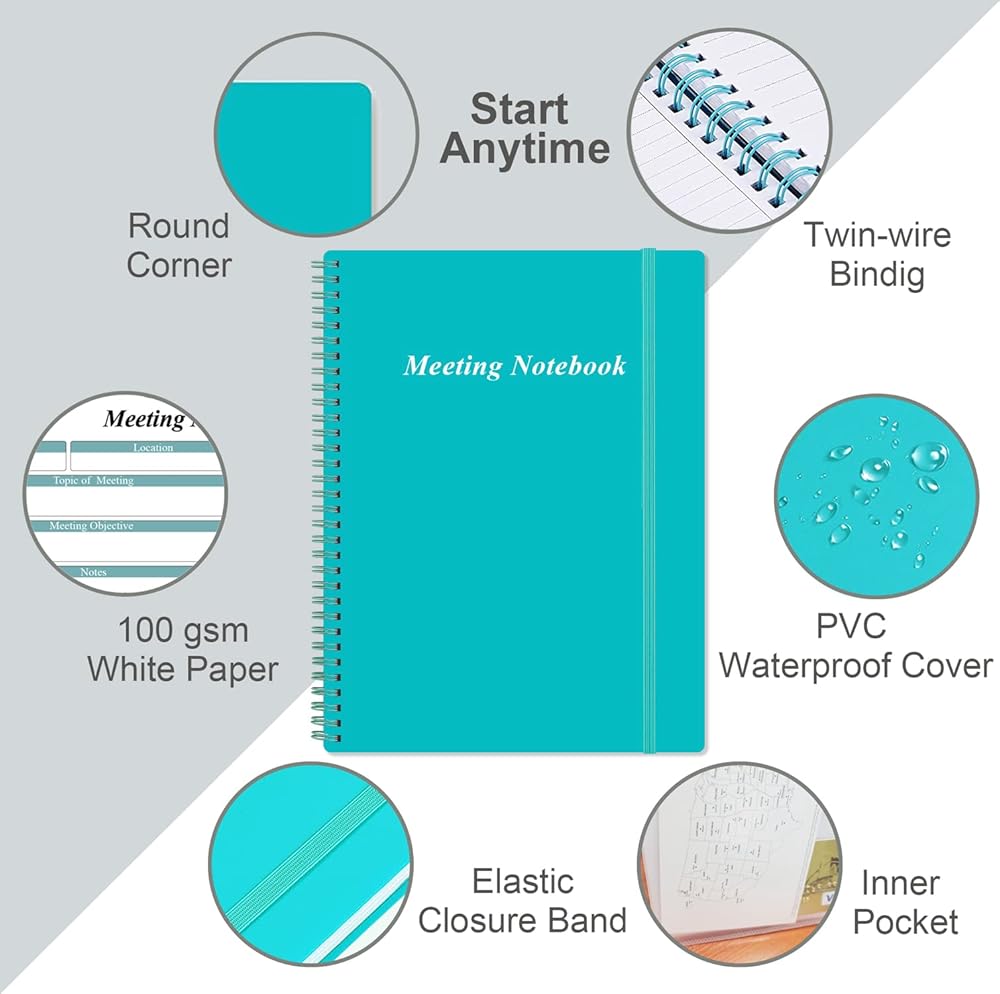 جودة عالية - يتم استخدام دفتر الاجتماعات الذي يحتوي على 80 ورقة/160 صفحة على ورق أبيض نقي عالي الجودة 100 جرام في المتر المربع، لذلك يمكنك بثقة استخدام معظم الأقلام وأقلام الرصاص وأقلام التحديد دون الظلال والنزيف. غطاء بولي بروبلين قوي ومرن لحماية الصفحات الداخلية بشكل جيد. معدن قوي وسلك مزدوج مسطح، مخطط مع جيب داخلي لتخزين العناصر السائبة، مثل التذاكر والبطاقات وما إلى ذلك وإغلاق مرن لحماية مخطط الاجتماع الخاص بك.