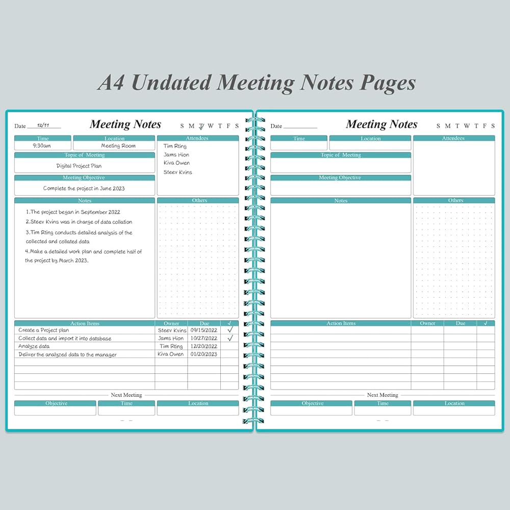 دفتر اجتماعات مثالي - أفضل دفتر اجتماعات للتخطيط للاجتماعات وتدوين الملاحظات وتتبع إجراءات المشروع. يمكنك استخدامها لتبسيط حياتك العملية ومساعدتك على البقاء منظمًا أثناء اجتماعاتك. يساعدك على إدارة عملك بكفاءة والوصول إلى أهداف مشروعك بشكل مثالي.