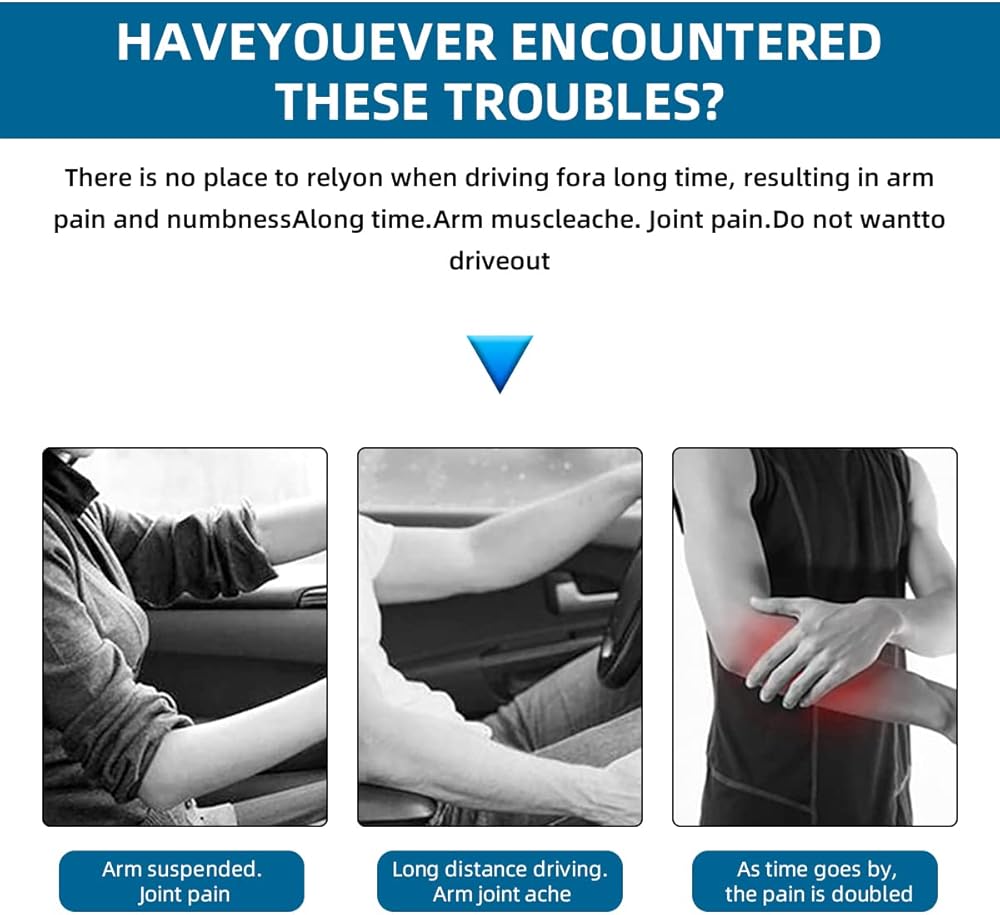 【مريح ومريح ومريح】يتميز دعم الكوع بتصميم مريح جديد تمامًا يوفر أقصى قدر من الراحة لدعم الذراع، ودعم السيارة والمنزل والمكتب، ومناسب بشكل خاص للسفر والقيادة على المدى الطويل.