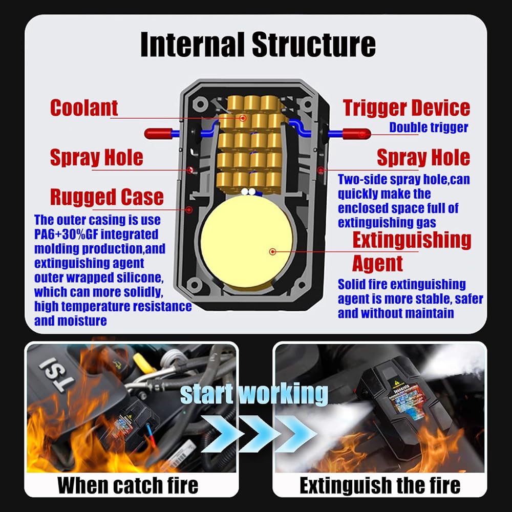 [جسم صغير ولكن قدرة إطفاء رائعة]: فقط حجم علبة السجائر ووزن 0.23 كجم، يمكن إطفاء أنواع الحرائق A، B، C، E، F، ويمكن أن تغطي بشكل فعال منطقة الحريق المغلقة أو شبه المغلقة بالكامل التي تبلغ 53 قدم مكعب