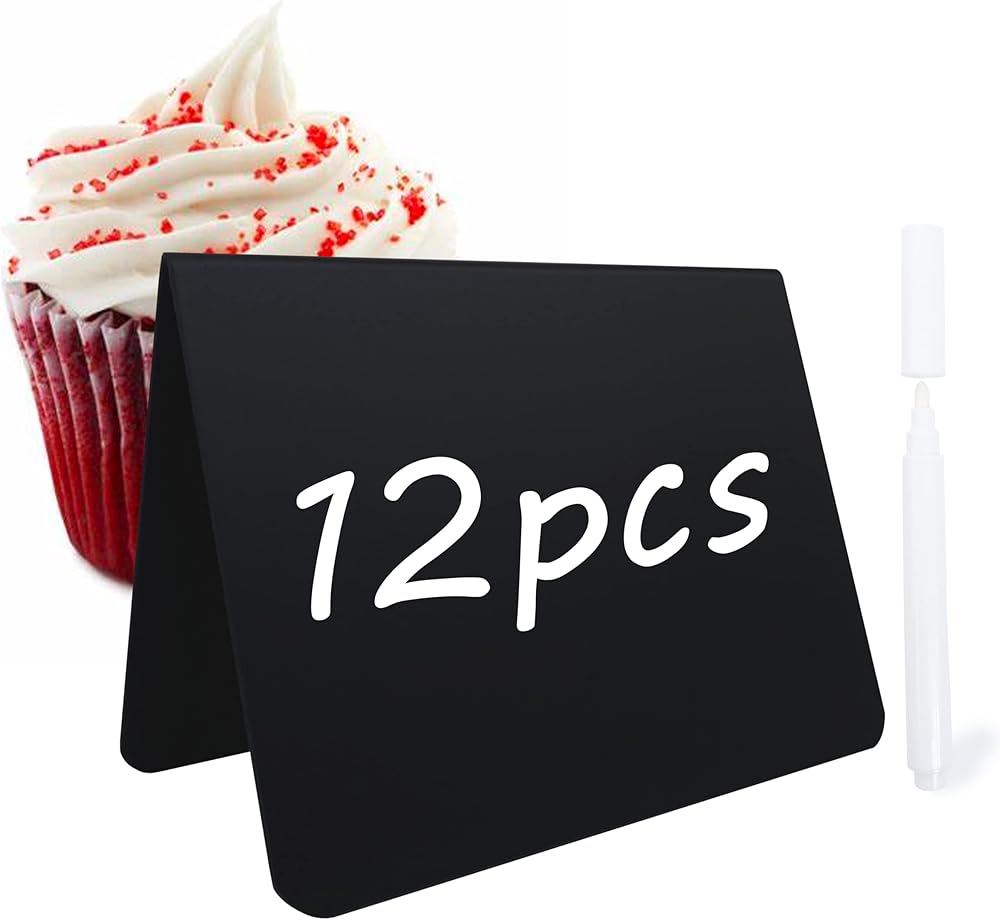 【كمية العبوة】12 قطعة من لافتات السبورة الصغيرة و1 قلم طباشير سائل.