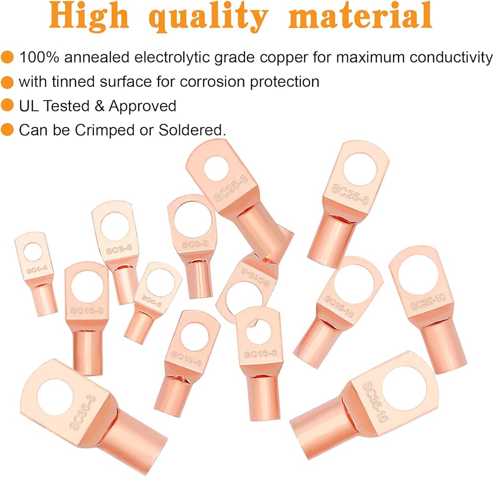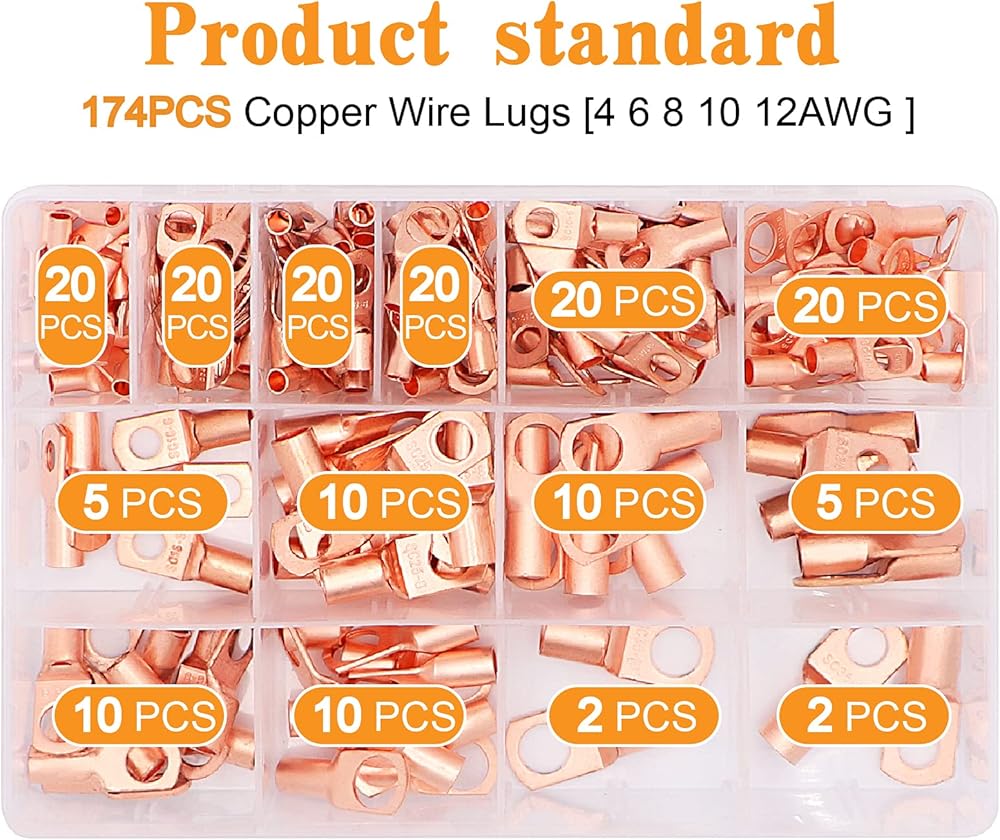 • تتضمن العبوة: سوف تحصل على 174 قطعة من أطراف العروات الحلقية النحاسية في 14 نوعًا، 20 قطعة لـ SC4-6، 20 قطعة لـ SC4-4، 20 قطعة لـ SC6-8، 20 قطعة لـ SC6-6، 20 قطعة لـ SC10-6 ، 20 قطعة لـ SC10-8، 5 قطع لـ SC16-6، 10 قطع لـ SC16-10، 10 قطع لـ SC16-8، 5 قطع لـ SC25-6، 10 قطع لـ SC25-10، 10 قطع SC25-8، 2 قطعة لـ SC35-8، 2 قطعة لـ SC35-10