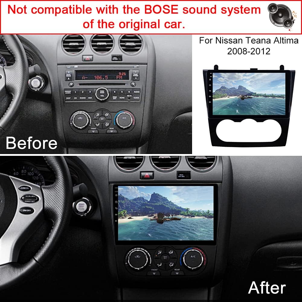 • 🚗راديو السيارة Android 13: يأتي راديو سيارة Altima مع إطار، (يرجى تأكيد طراز Nissan Altima 2008 2009 2010 2011 2012 قبل الشراء). تحتوي الوحدة الرئيسية على شاشة لمس عالية الدقة مقاس 9 بوصات، مما يجعل راديو السيارة يبدو واضحًا وأنيقًا بشكل خاص، مما يمنحك متعة بصرية. 4 جيجابايت رام + 64 جيجابايت روم