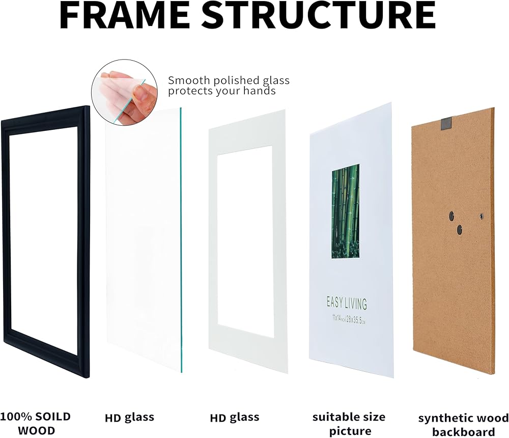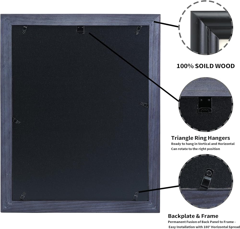 مواد عالية الجودة: مصنوع من الخشب الصلب، هذا الإطار العصري البسيط يتميز بزجاج عالي الدقة يحافظ على صورك تبدو حادة وواضحة في المستقبل.