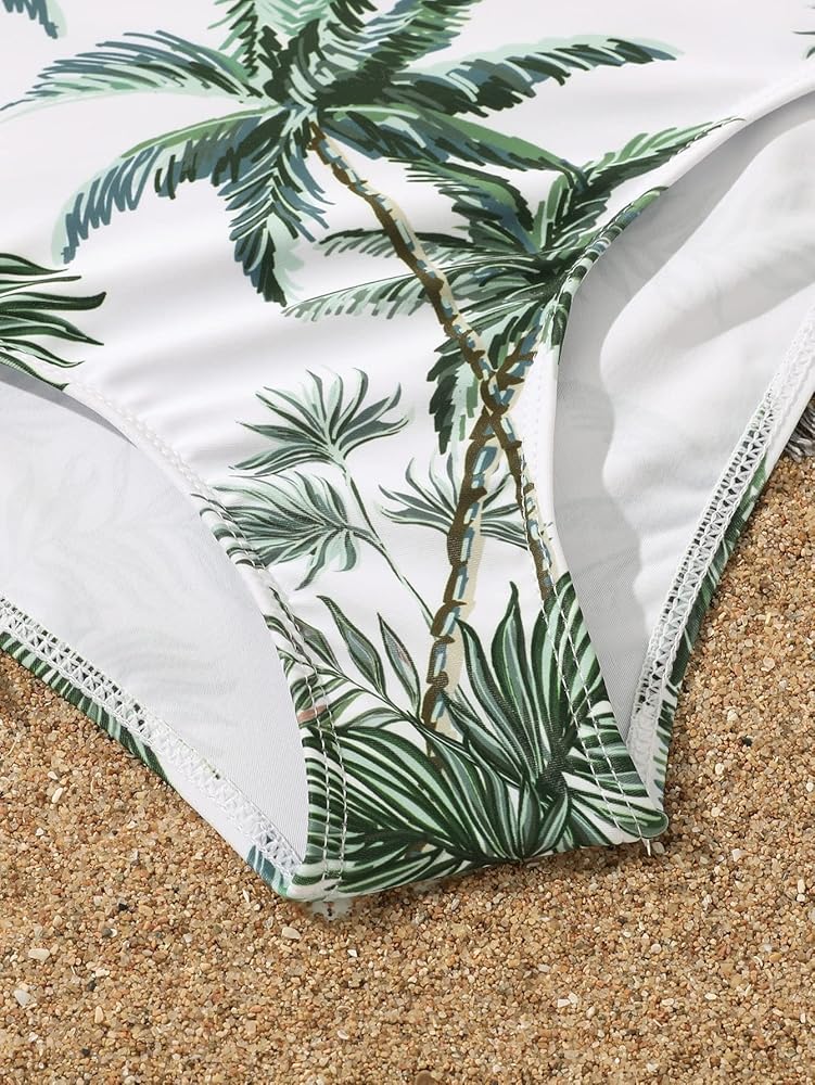 • المزايا: مقصوص، مجموعة من قطعتين، رقبة واسعة، أكمام طويلة، طباعة استوائية، بدلة سباحة قطعة واحدة، خصر مرتفع