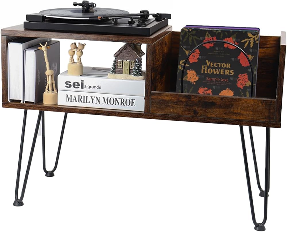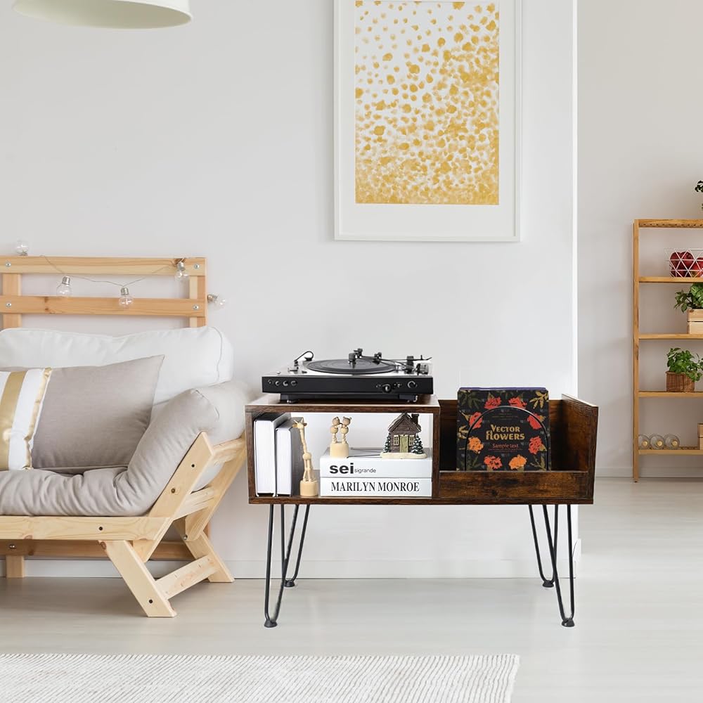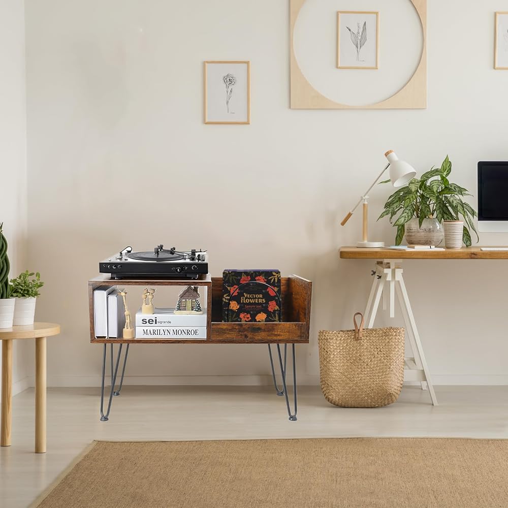【ديكور منزلي مثالي】: حامل مشغل تسجيل يجمع بين الطراز القديم والخطوط النظيفة. إنها تضفي الأناقة عند وضعها كخزانة تخزين سجلات الفينيل، أو طاولة بجانب السرير، أو خزانة ملفات، أو خزانة كتب في غرفة المعيشة، أو غرفة النوم، أو المكتب، أو غرفة الدراسة.