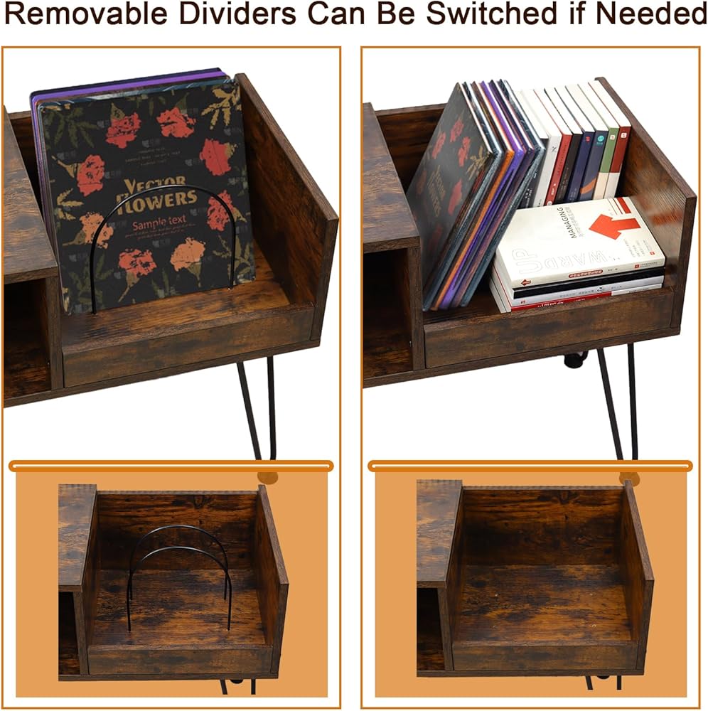 【فواصل قابلة للإزالة】: فاصلان قابلان للإزالة لمشغل الأسطوانات للحفاظ على سجلاتك في وضع مستقيم وحماية سجلات الفينيل الخاصة بك. قم بإزالة الفواصل وسيتسع التخزين الكبير المفتوح بسهولة لجميع سجلات الفينيل الخاصة بك.
