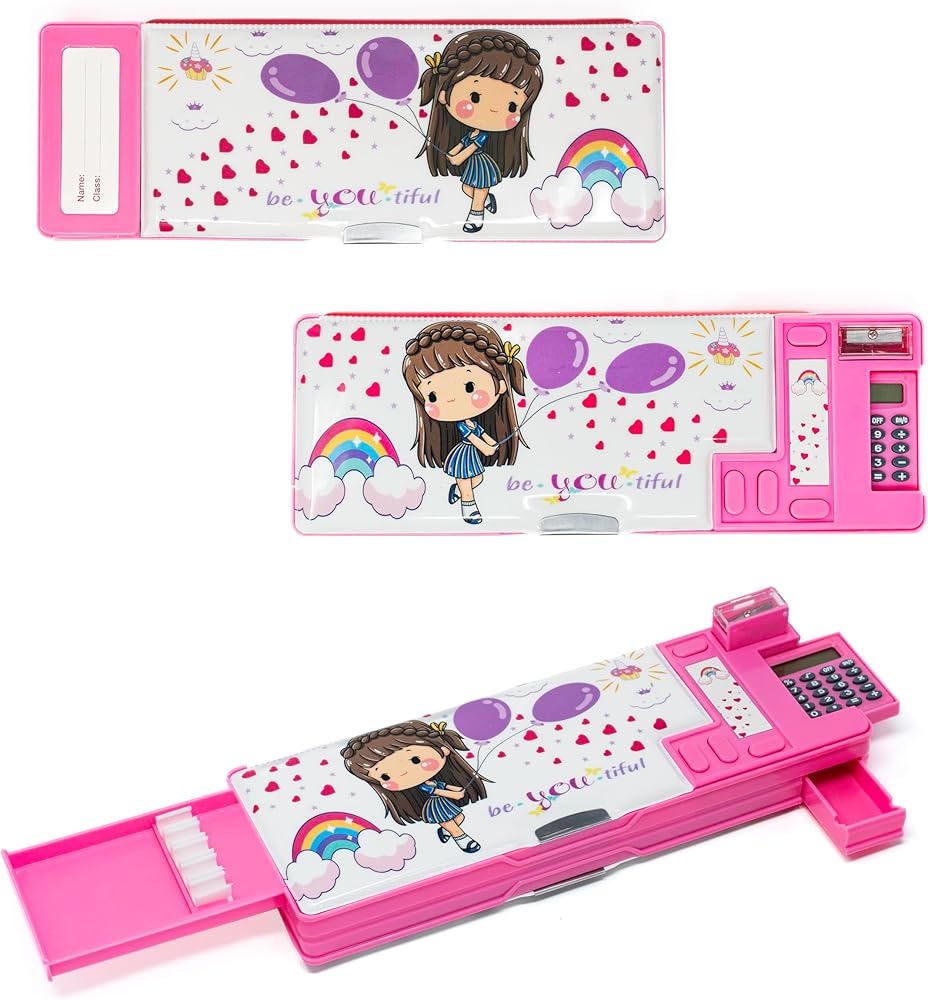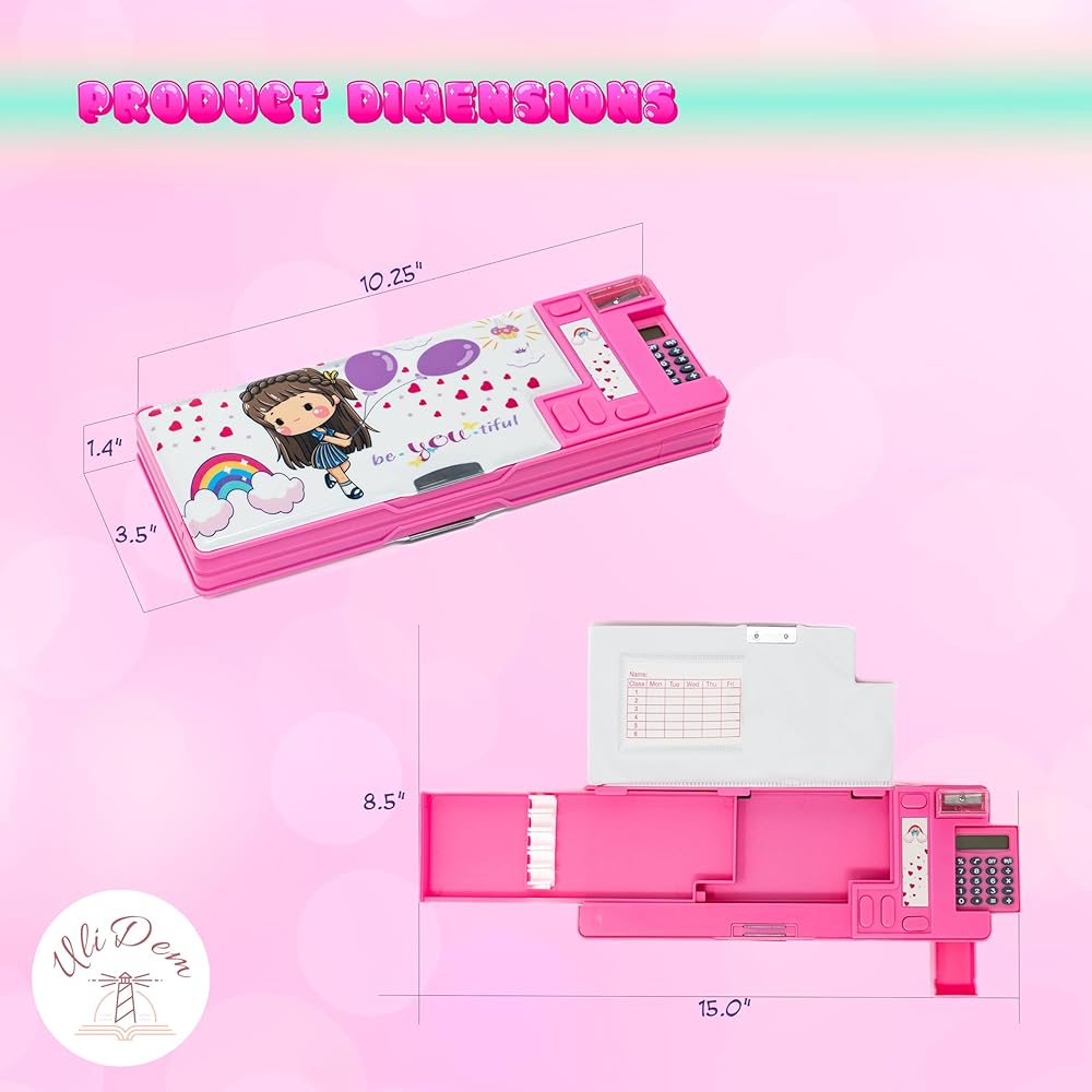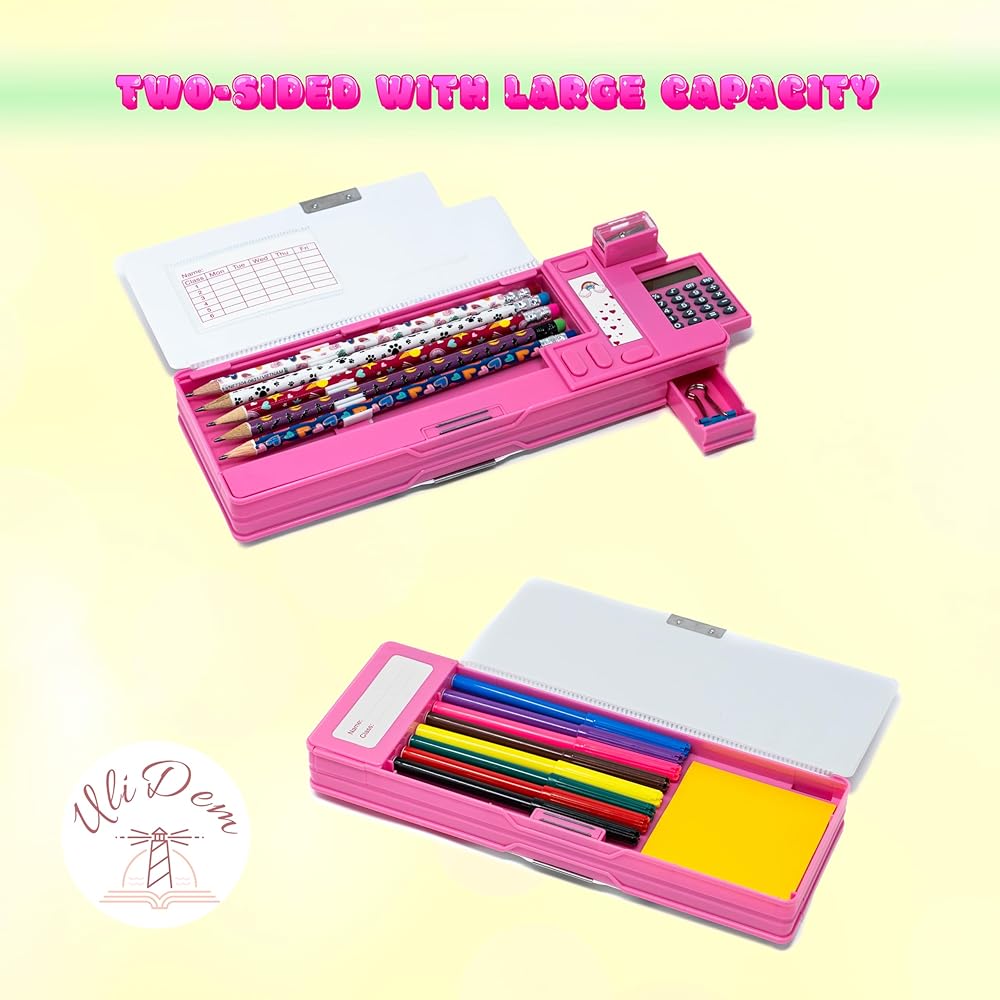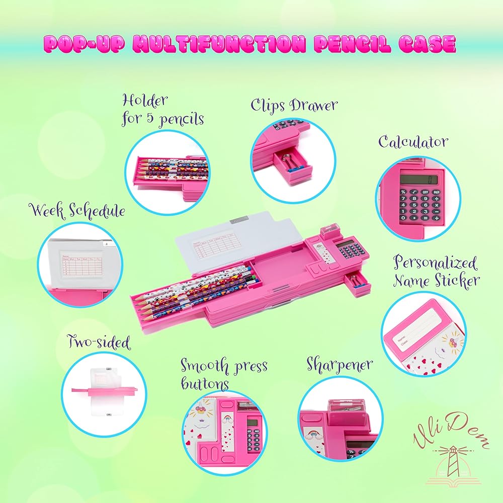 POP-UP MAGIC: تعتبر حافظة الأقلام متعددة الوظائف المبتكرة التي نقدمها ناجحة للفتيات، مما يجعل الوصول إلى مستلزماتهن المدرسية أمرًا ممتعًا وسهلاً.