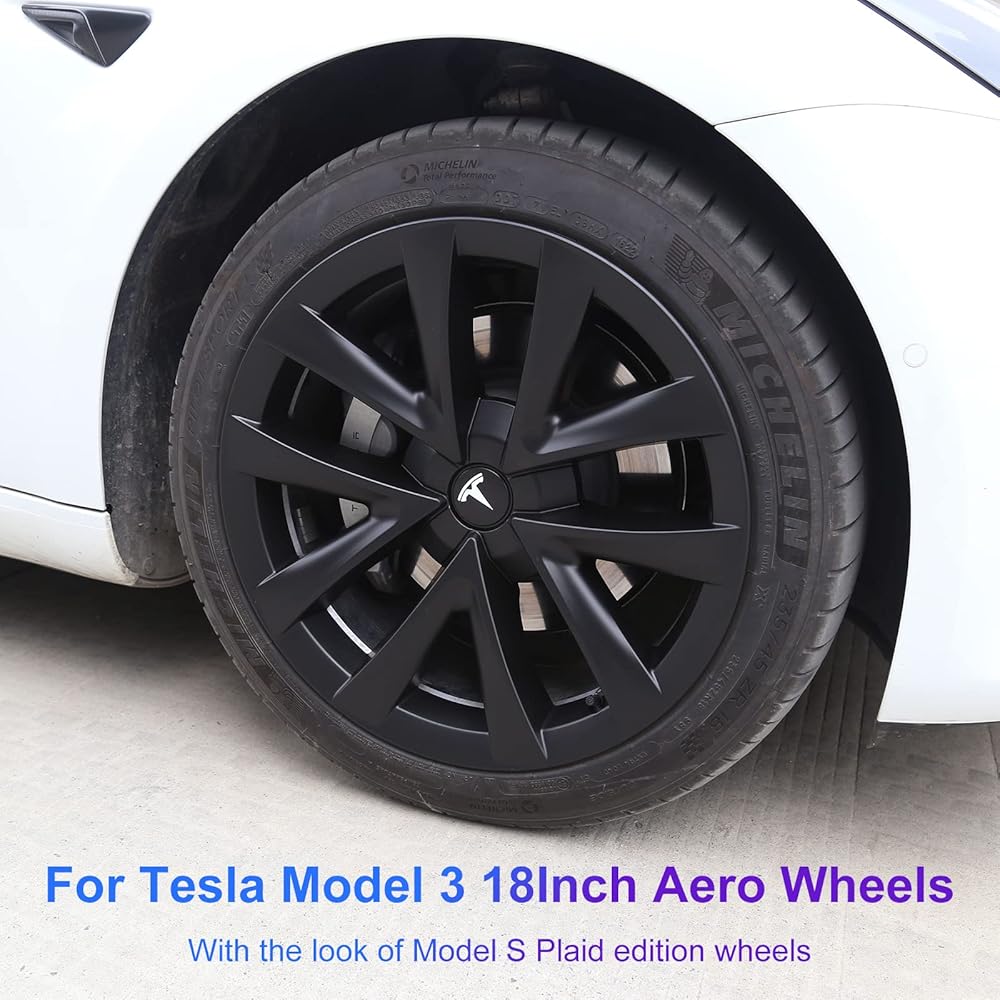 أغطية عجلات هوائية مقاس 18 بوصة لإطارات Tesla Model 3، أغطية محور بديلة لـ 2017-2022 Tesla Model 3 (مجموعة من 4، أسود غير لامع)