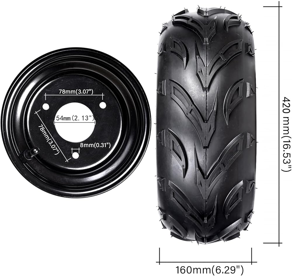 【الاستخدام على نطاق واسع】سواء كان ذلك على جبل وعرة أو طريق مسطح، فإن إطاراتنا مناسبة. تتمتع مجموعات الإطارات لدينا بأداء ممتاز ويمكن استخدامها على نطاق واسع في ATV، والدراجة الصغيرة، وعربة الجولف، وGo-Kart، وجزازة العشب، وما إلى ذلك.