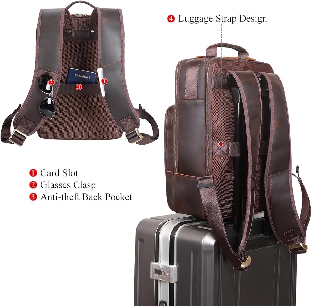 • 【هدايا أفكار وتستخدم على نطاق واسع】حقيبة الظهر الجلدية للكمبيوتر المحمول هذه أنيقة ومتينة، ويمكن استخدامها كحقيبة جامعية، أو حقيبة نهارية كاجوال يومية أو حقيبة كمبيوتر محمول. كما أنها مناسبة للتنقل والعمل المتنقل والأنشطة الخارجية ورحلات المدينة ورحلات العمل. إنها واحدة من أفضل الهدايا له ولنفسك في عيد الميلاد وعيد الشكر وأعياد الميلاد والذكرى السنوية وعيد الحب وعيد الأب.