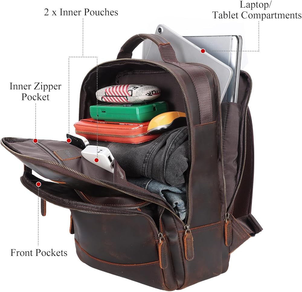 حقيبة ظهر من الجلد المحبب بالكامل للرجال من TIDING، حقيبة كمبيوتر محمول عتيقة مقاس 15.6 بوصة حقيبة كتب كاجوال وحقائب نهارية للعمل