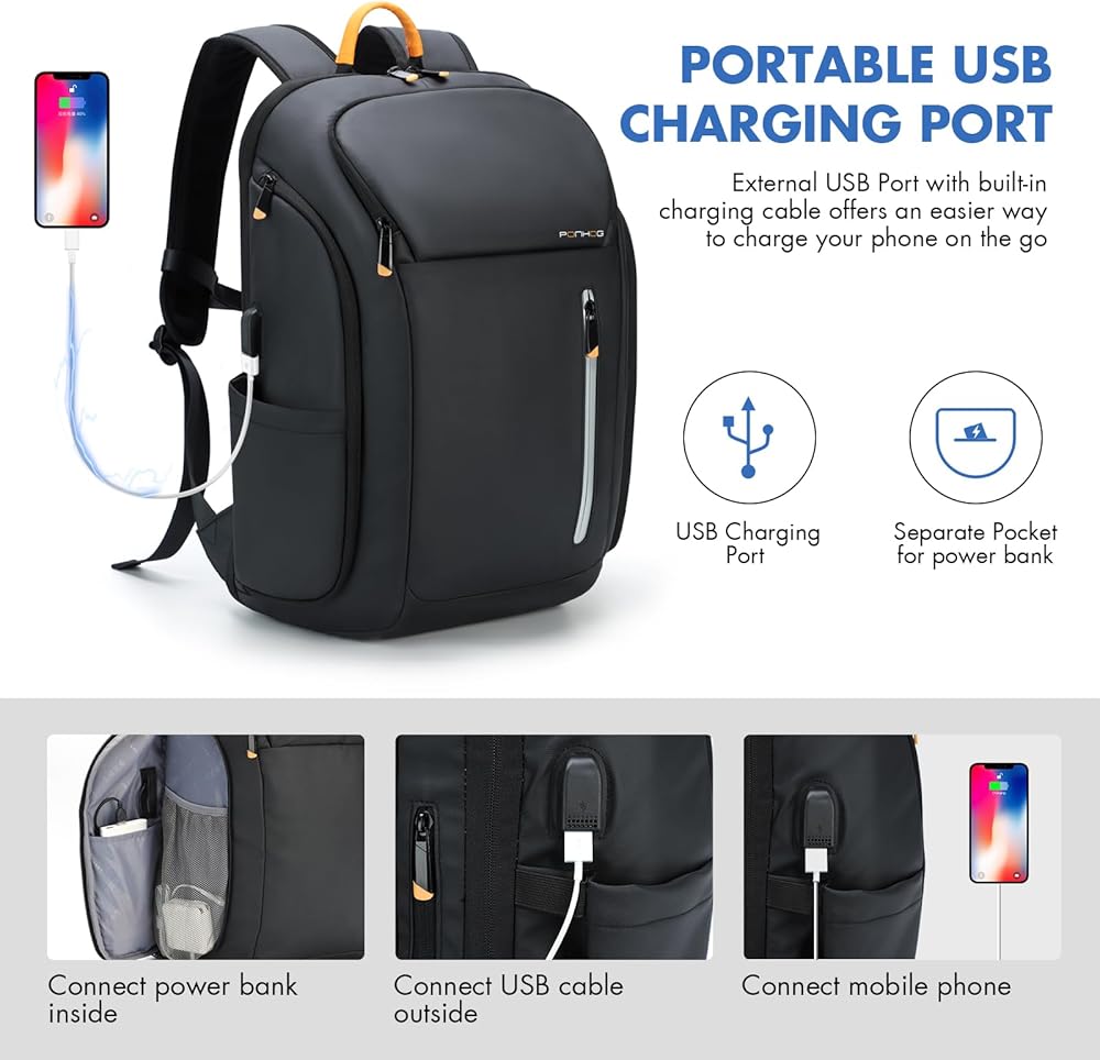 تصميم صديق لإدارة أمن المواصلات الأمريكية - تم تصميم حقيبة الظهر التقنية الخاصة بنا مع وضع المسافر العصري في الاعتبار، ويمكن فتحها بحرية 90-180 درجة؛ إنه حجم معتمد للطيران، مما يسمح لك بالمرور عبر أمن المطار دون أي متاعب، ومناسب لمعظم شركات الطيران بما في ذلك شركات الطيران ذات الميزانية المحدودة؛ يمكّنك منفذ الشحن USB من شحن أجهزتك بسهولة أثناء التنقل