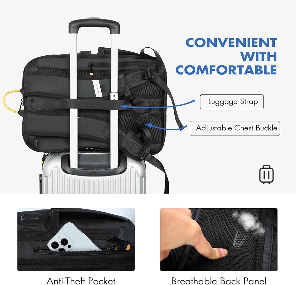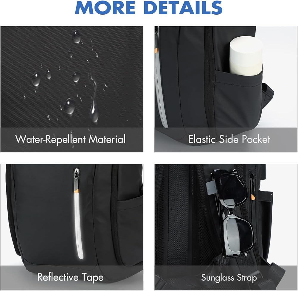 تصميم محسّن - تتميز حقيبة الظهر الذكية هذه بتصميم متعدد الوظائف لتجربة أفضل؛ ظهر مصمم مريح يزيد من التهوية والراحة، وأحزمة كتف مبطنة تتضمن أحزمة لتعليق النظارات الشمسية، وجيب خاص مضاد للسرقة للحماية، وحزام صدر لتوزيع الوزن، وحزام الأمتعة لتسهيل النقل