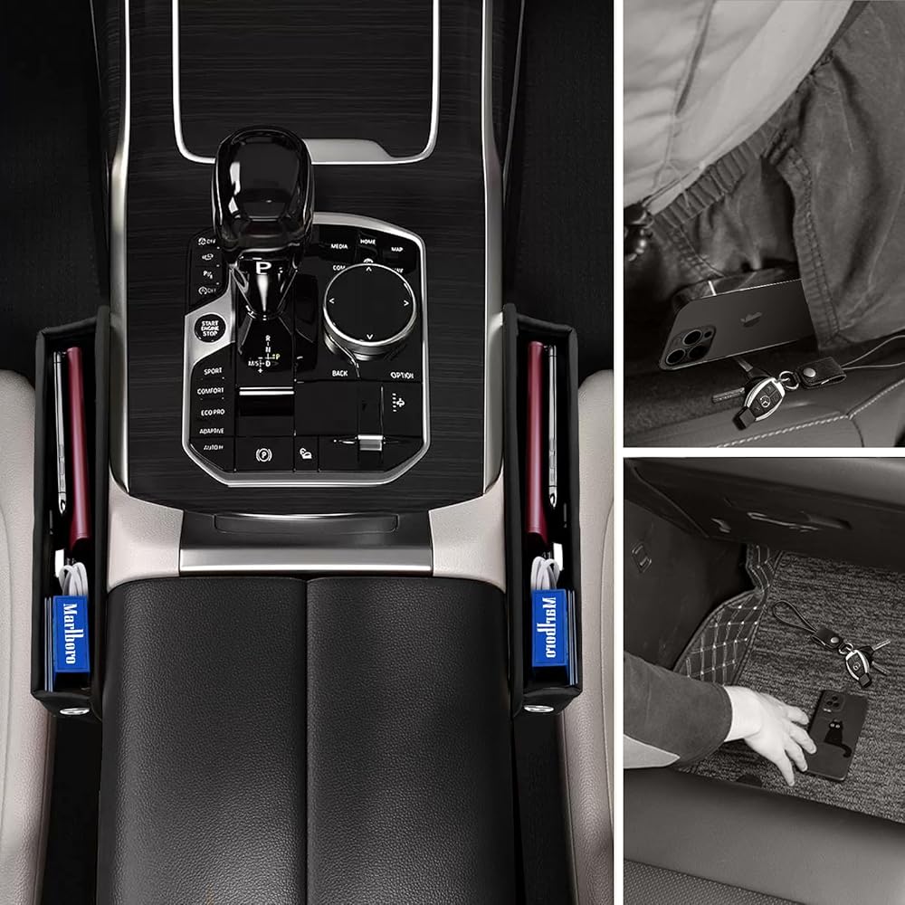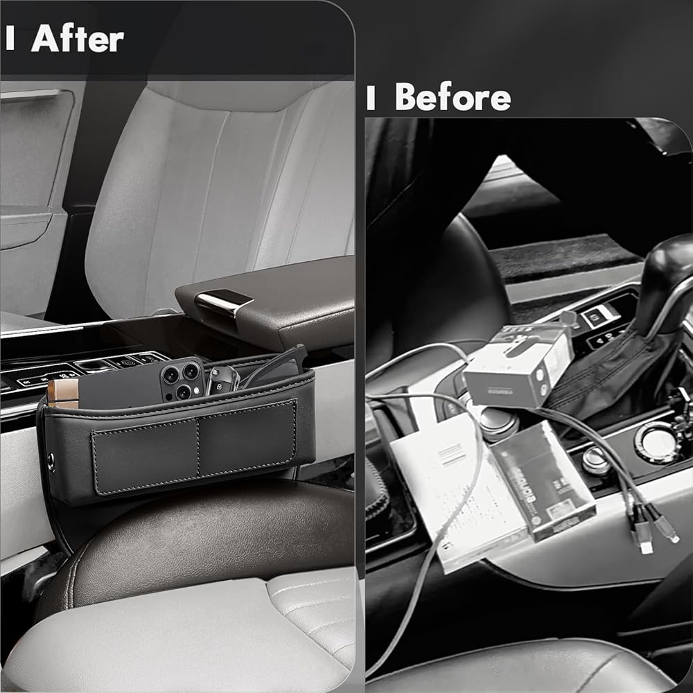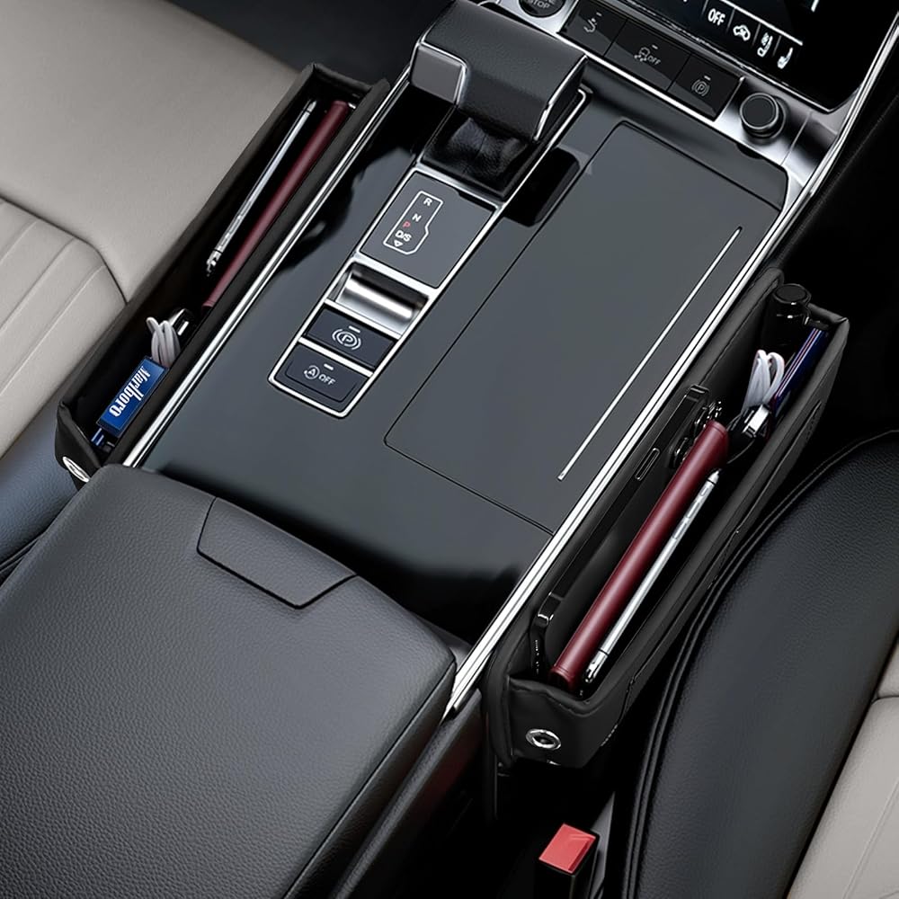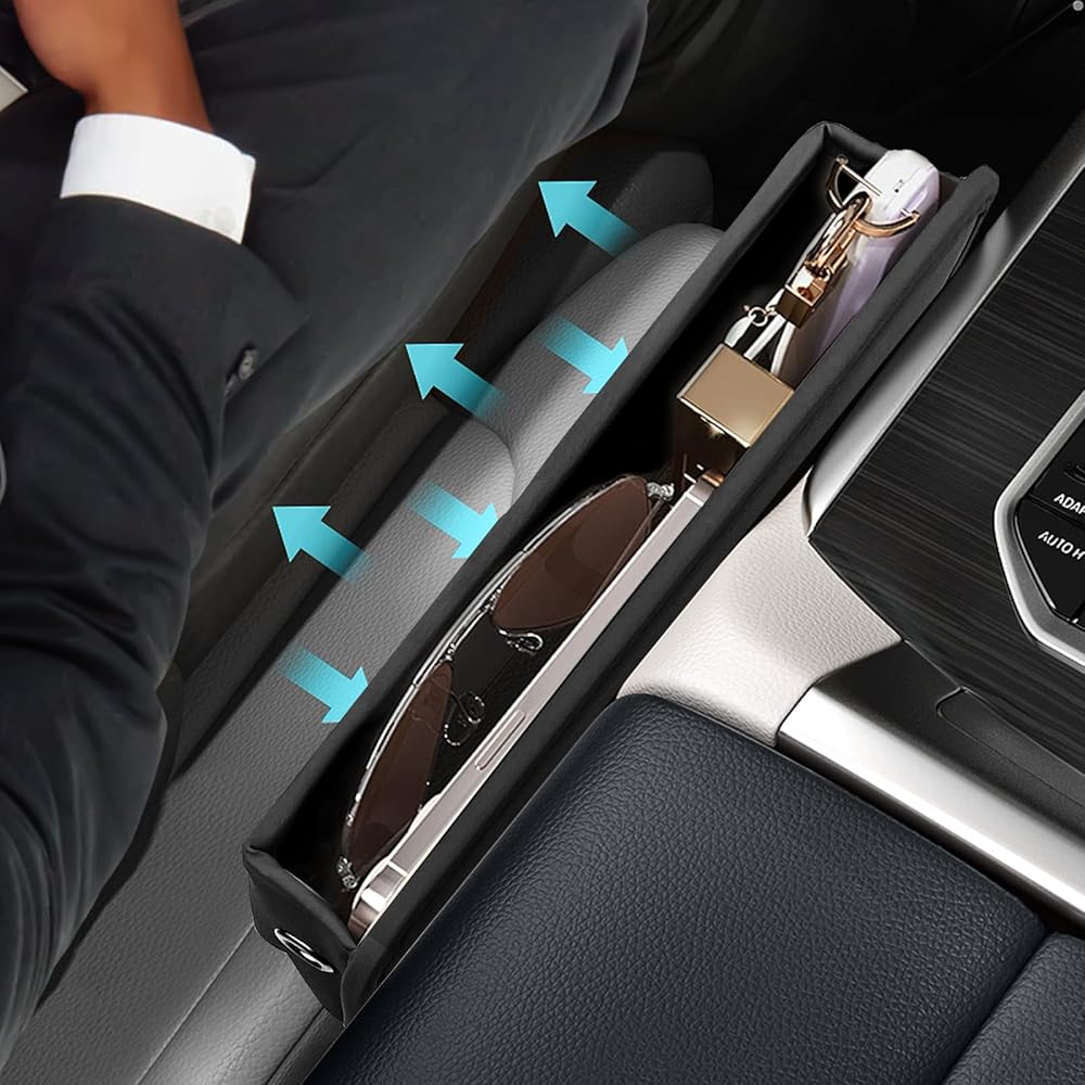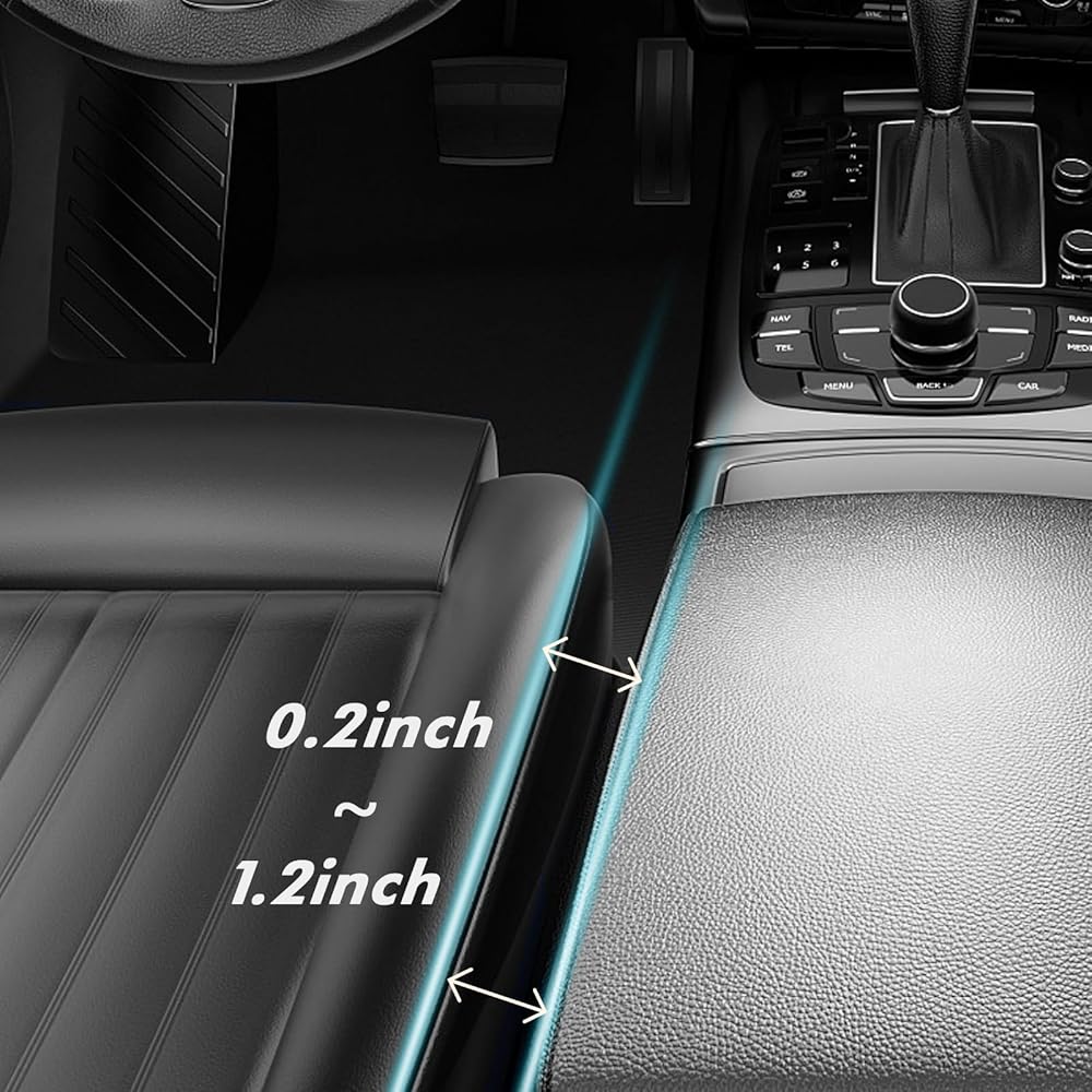 【يحافظ على نظافة السيارة】- تعمل حشوات فجوة مقعد السيارة الجانبية على ملء المساحة بين مقاعد السيارة بسلاسة وتوفر حل تخزين مناسب للأشياء الصغيرة مثل الهواتف المحمولة والمفاتيح والولاعات والنظارات الشمسية. يساعد في الحفاظ على نظافة سيارتك وصيانتها، كما يمنع الفتات والسقوط العرضي.