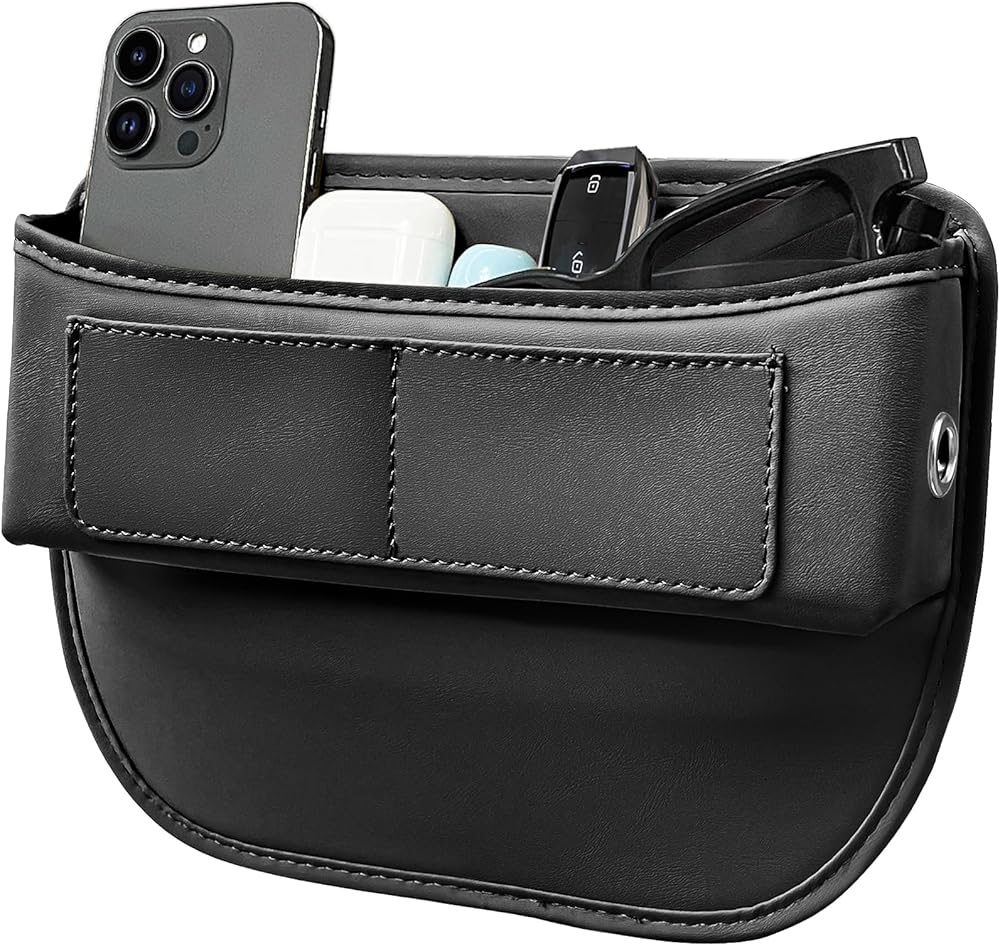【يناسب معظم السيارات】- منظم المقاعد الخاص بنا مصنوع من جلد صناعي عالي الجودة ليمنحك شعورًا مريحًا ويناسب معظم السيارات لأن التصميم يجعله مرنًا ويمكن أن يناسب أي مساحة مقعد تتراوح بين 0.2 بوصة و1.2 بوصة. تتمتع الإسفنجة الداخلية بمرونة جيدة وتساعد منظم تخزين السيارة على الإمساك بها بقوة وبشكل صحيح، دون التدخل في حزام الأمان وأيضًا دون التأثير على تعديل المقعد، وتنسجم مع المقاعد الجلدية.