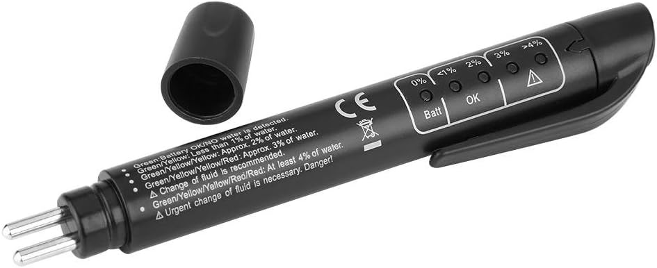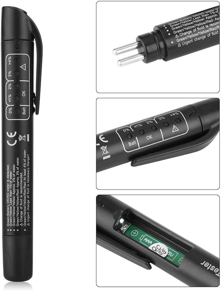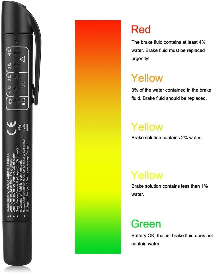 قلم اختبار سائل سائل الفرامل: قلم فحص جودة الزيت مع 5 مصابيح LED يعرض نسبة المحتوى في سائل الفرامل، ويوفر نتيجة اختبار أكثر دقة.