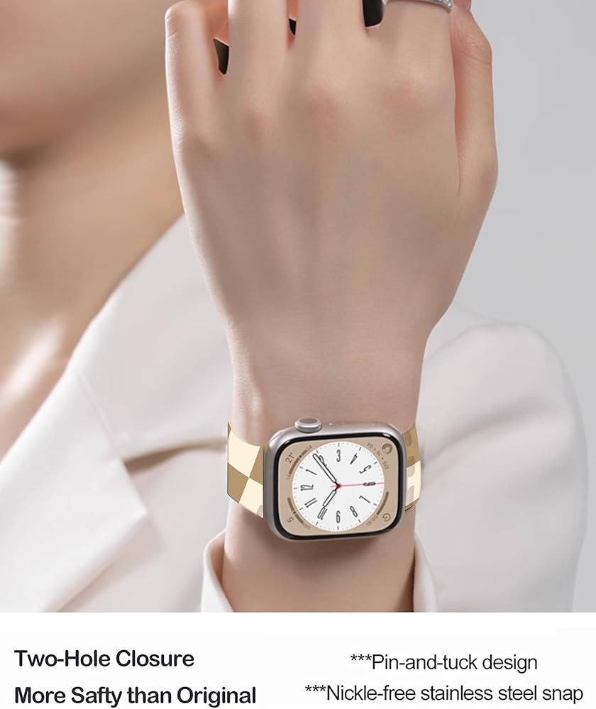 مقاس قابل للتعديل - 38 مم/40 مم/41 مم مناسب للمعصم مقاس 5.12 بوصة - 7.48 بوصة (130 مم - 190 مم)؛ تسمح لك الثقوب المسامية الموجودة على حزام الساعة بتعديل الحجم بسهولة وفقًا لاحتياجاتك.
