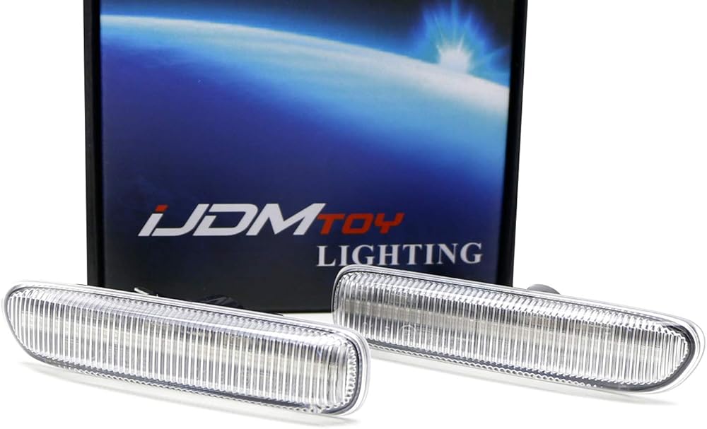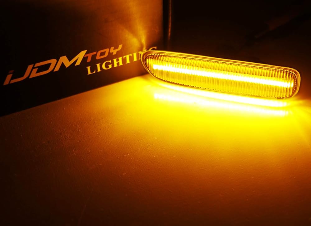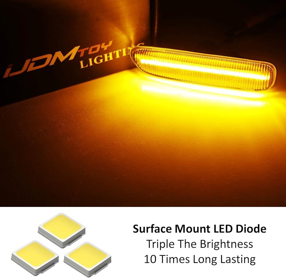 زوج واحد (جانبي السائق والراكب) غطاء عدسات داكنة/دخانية من مصابيح التحديد الجانبية LED باللون الكهرماني