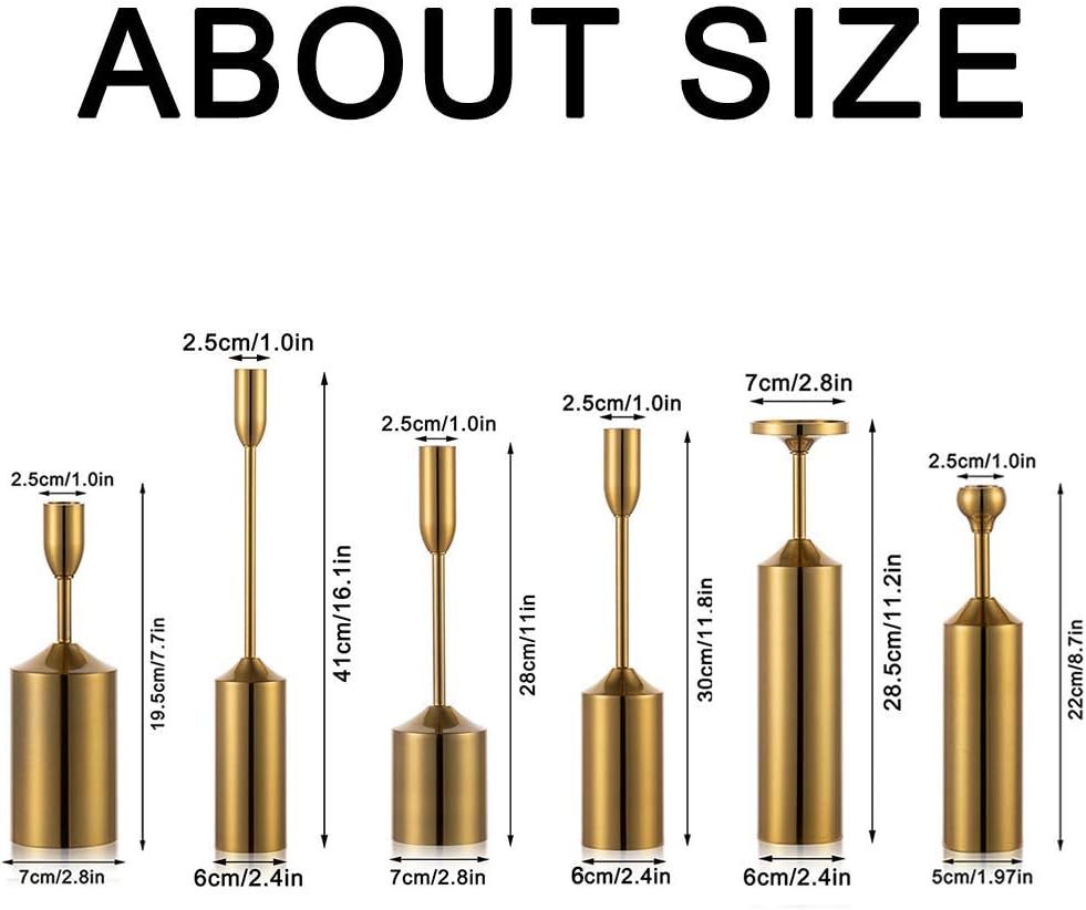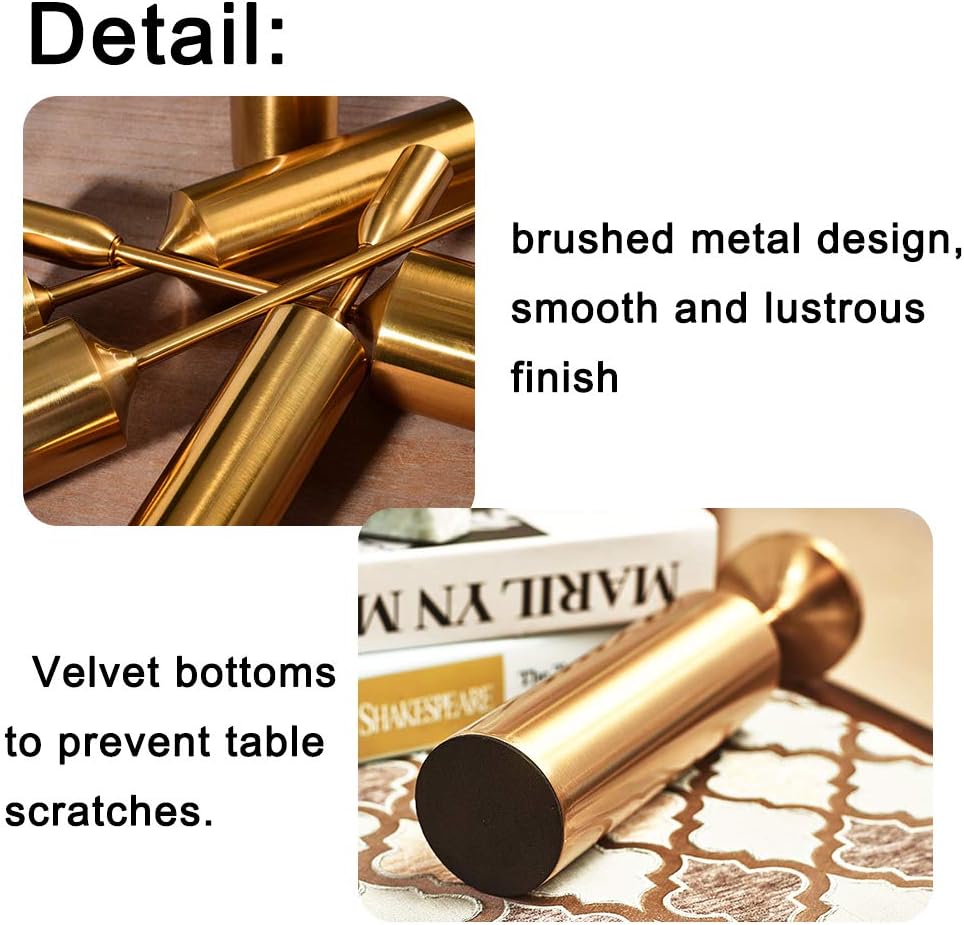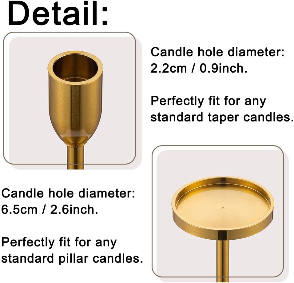 • ديكور مثالي: يتكون حامل الشموع العتيق الخاص بنا من ارتفاعات مختلفة مع تصميم معدني مصقول، واللمسة النهائية الناعمة واللامعة تجعلها تبدو أنيقة ونبيلة، وتناسب نظام الألوان لأي إعداد تقريبًا. إنها زينة رائعة لأي مكان، حتى بدون الشموع.