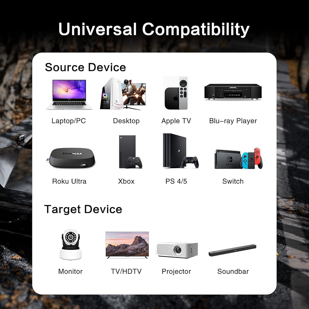 【توافق عالمي】 سلك HDMI NITASA 8K مصنوع من مواد عالية الجودة للحصول على أفضل اتصال بين أجهزة HDMI وApple TV 4K وتلفزيون Fire ومشغلات CD/DVD/Blu-ray وSoundbar Bose PS5/PS4/PS3 وسطح البخار أو Xbox One/360 أو Nintendo Switch أو أجهزة الكمبيوتر المحمولة أو أجهزة الكمبيوتر أو الأجهزة الأخرى التي تدعم HDMI و4K/8K (TCL SHARP hisense Vizio Insignia Hitachi RCA ROKU Toshiba Westinghouse) تلفزيون ذكي عالي الدقة أو شاشات أو أجهزة عرض أو أجهزة عرض من علامات تجارية مثل Samsung وديل وLG وباناسونيك وغيرها.