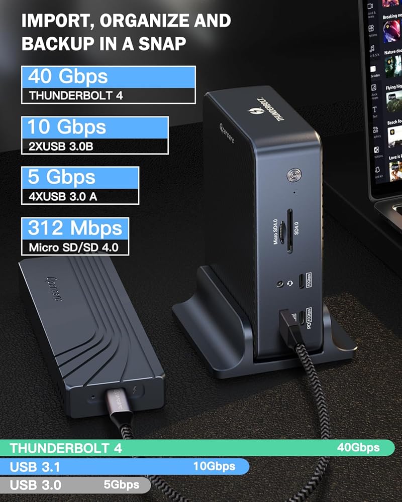 • توافق واسع: قاعدة Thunderbolt متوافقة تمامًا مع كمبيوتر USB4 أو Thunderbolt 3 لتعمل كمحطة شحن USB 4؛ تتوافق قاعدة Thunderbolt 4 هذه مع مجموعة متنوعة من أجهزة الكمبيوتر المحمولة DELL وHP وLenovo وMacBook Pro