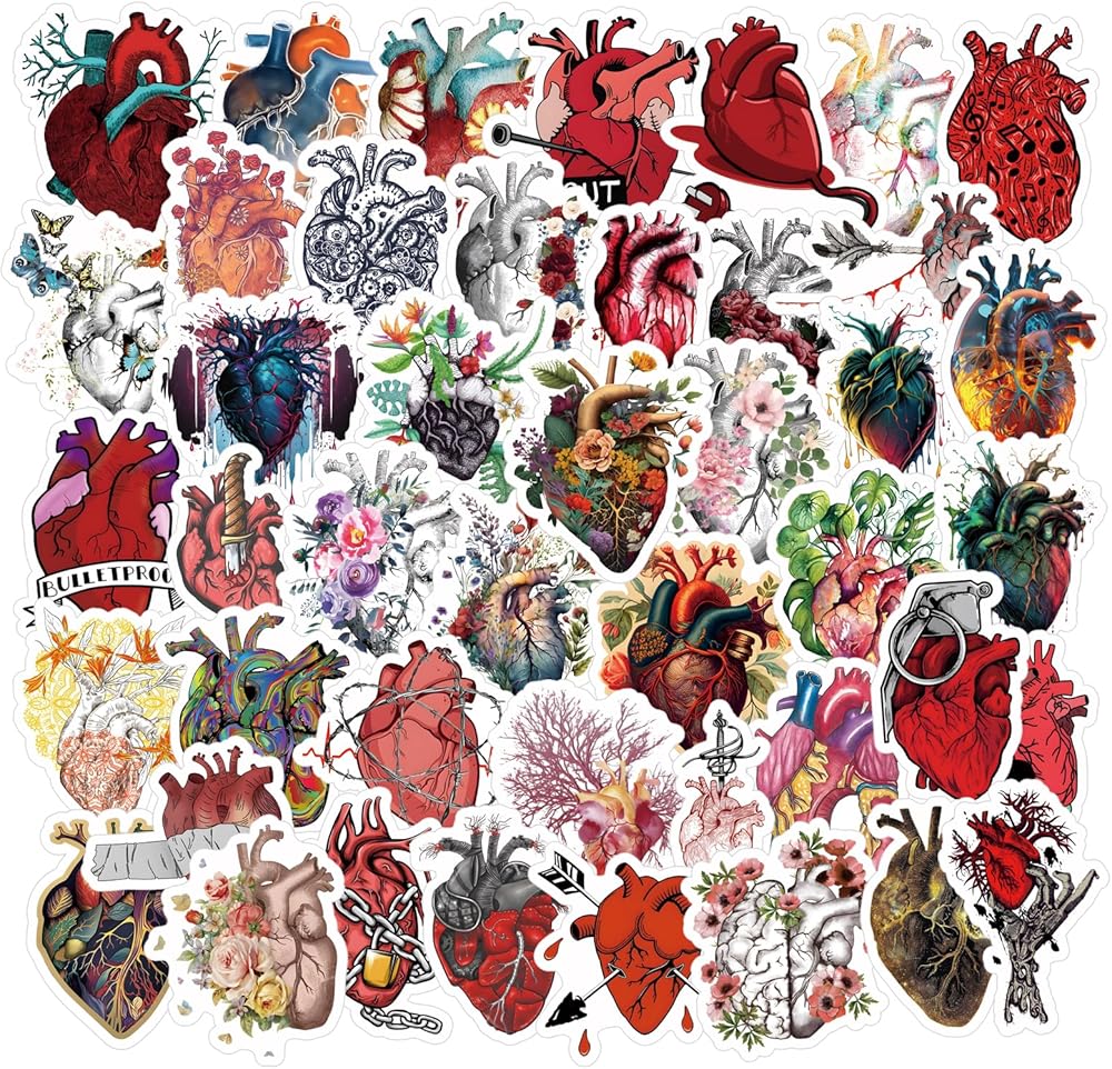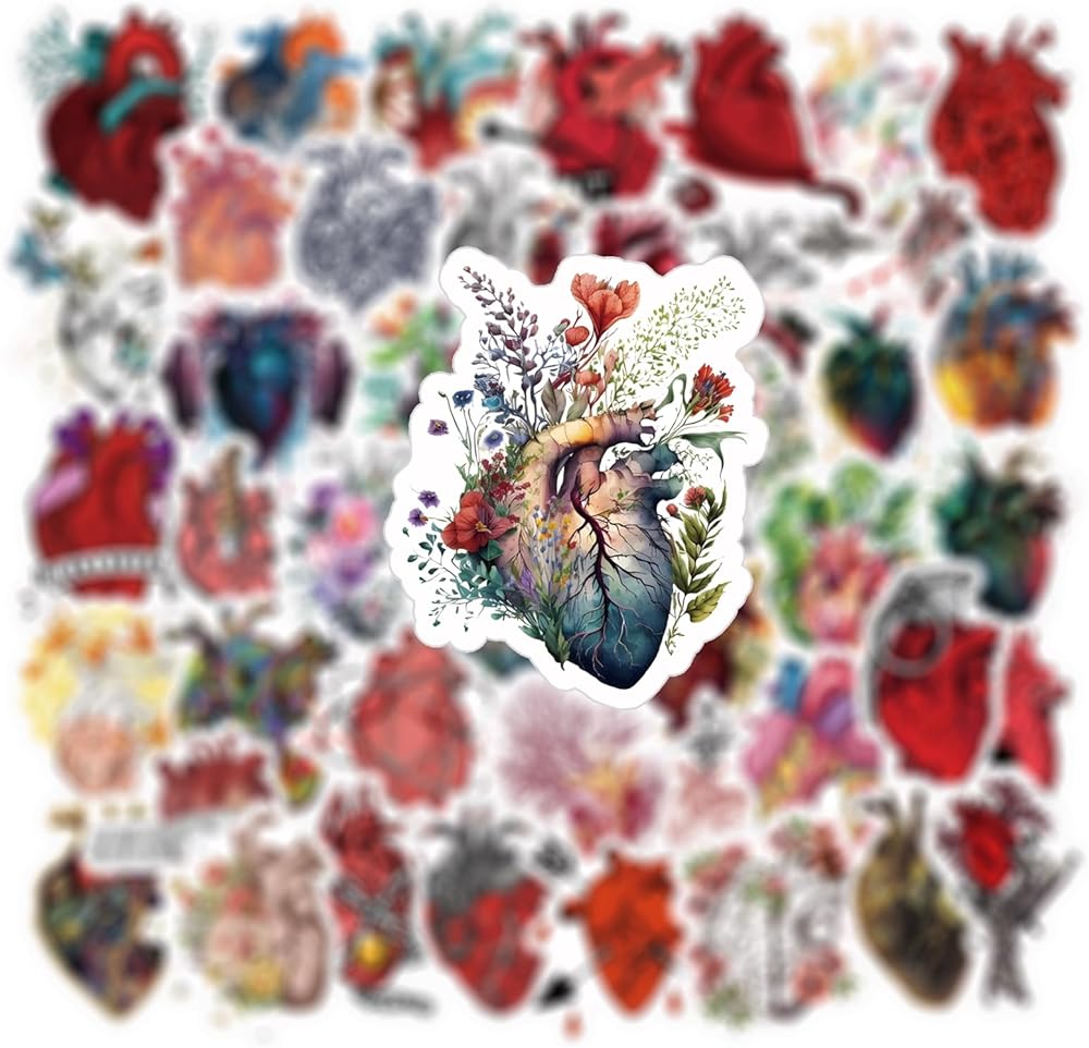 62 قطعة من ملصقات القلب، ملصقات جمالية، ملصقات فينيل مقاومة للماء لأجهزة الكمبيوتر المحمول، ممتص الصدمات، لوح التزلج، زجاجة مياه، الكمبيوتر، الهاتف، ملصقات كرتونية للأطفال والمراهقين والبالغين