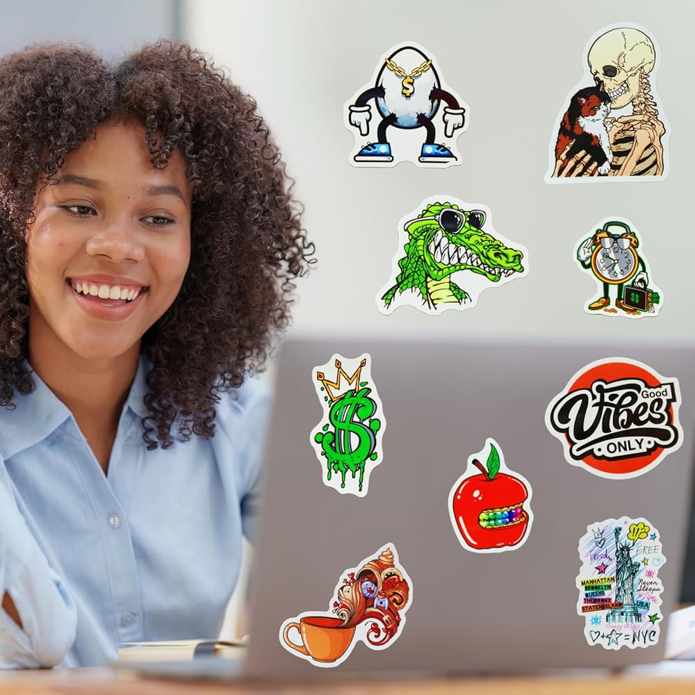 أشياء رائعة عشوائية: تحتوي حزمة الملصقات هذه على الكثير من الأشياء الرائعة، وهي مثالية كملصقات لوح التزلج ومناسبة أيضًا كحزم ملصقات يومية للبالغين والمراهقين.