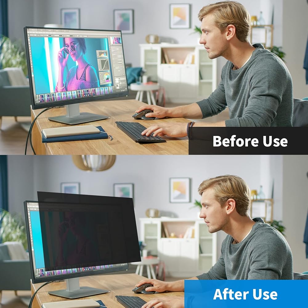 【شاشة كمبيوتر مضادة للزقزقة 27 بوصة】 لا يحمي فلتر الشاشة المضاد للزقزقة مقاس 27 بوصة حياتك الخاصة فحسب، بل يحمي عينيك أيضًا عن طريق حجب 90% من الضوء الأزرق و96% من الأشعة فوق البنفسجية. تساعد شاشة الكمبيوتر المقاومة للظهور أيضًا على حماية شاشتك من الغبار والأوساخ، كما أن الطبقة الواقية المدمجة المعززة لا تقدم جودة صورة عالية الوضوح فحسب، بل تحمي شاشتك أيضًا من الخدوش.