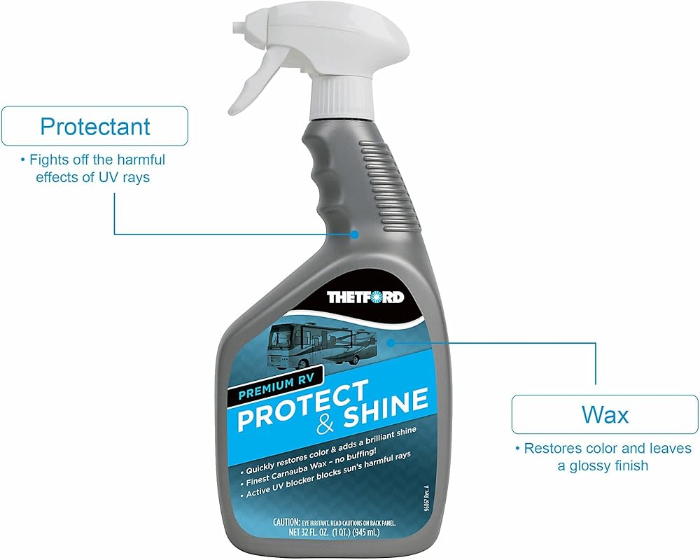 يعمل على أسطح متعددة: يعمل Protect & Shine على استعادة اللون واللمعان على الأسطح الداخلية والخارجية، وهو مصمم خصيصًا للمركبات الترفيهية والسيارات والشاحنات والقوارب والدراجات النارية وأي مركبات أخرى.