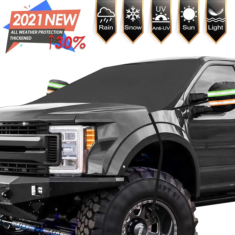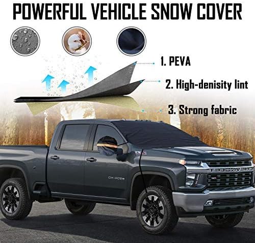 أغطية الجليد الثلجي للزجاج الأمامي مقاس أكبر جدًا 97 بوصة × 63 بوصة مع 3 طبقات حماية من المواد - حماية ضد الماء من أشعة الشمس لجميع السيارات والشاحنات وسيارات الدفع الرباعي والمركبات المتعددة الأغراض