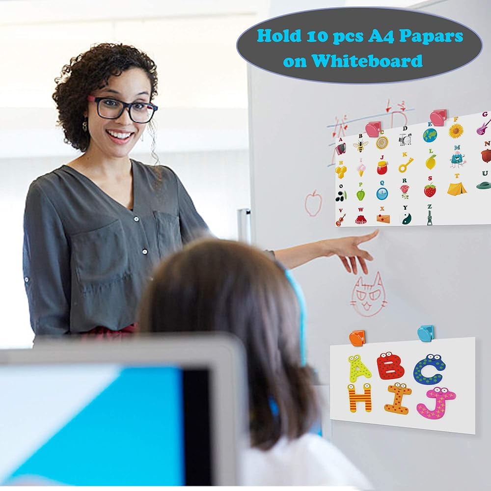 {مشبك مغناطيسي قابل للاستخدام على نطاق واسع}: هذه المغناطيسات للفصل الدراسي للسبورة البيضاء جميلة، بمظهر ملون وتصميم جميل، هذه المغناطيسات الملونة للسبورة البيضاء مثالية لنشر الصور والملاحظات وقوائم التسوق والفواتير لجذب ثلاجتك، واللوحة البيضاء، والمعدن مكتب مجلس الوزراء أو أي سطح معدني آخر