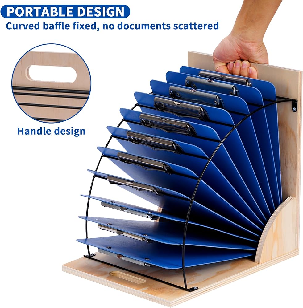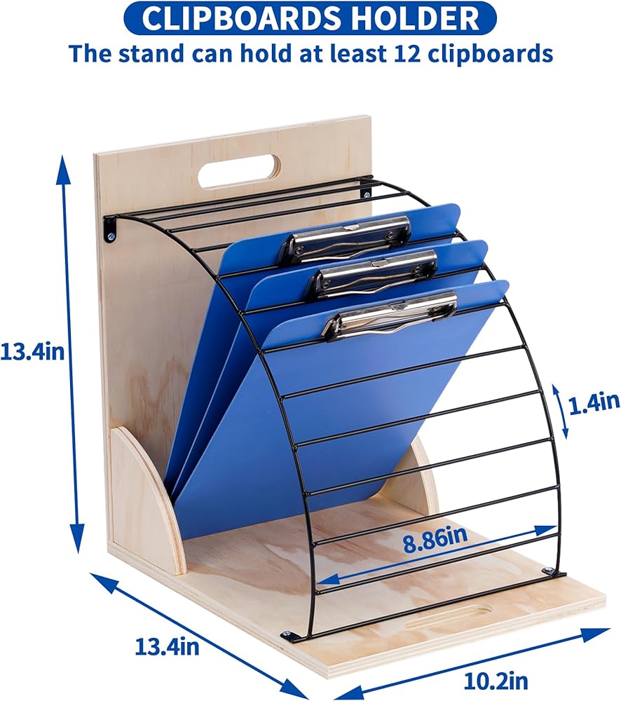 【خامة ممتازة】يبلغ مقاس حامل الحافظة 25.4 سم طولًا × 33.02 سم عرضًا × 33.02 سم ارتفاعًا (حجم فتحة السلك 21.86 سم طولًا × 3.81 سم عرضًا) ويتكون من قواعد خشبية ورف معدني. يتيح لك تصميم المقبضين حملها بسهولة للأنشطة الداخلية والخارجية، يمكن وضعها على المكتب أو تعليقها على الحائط.