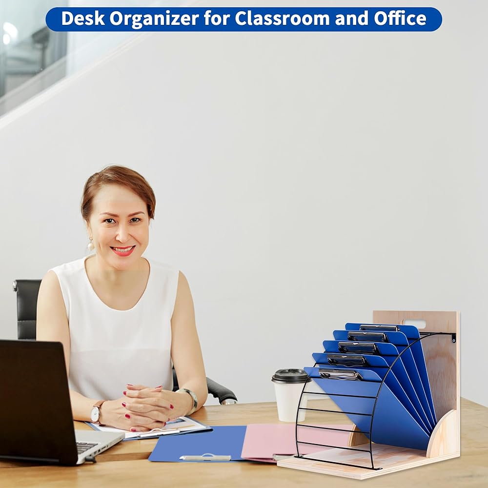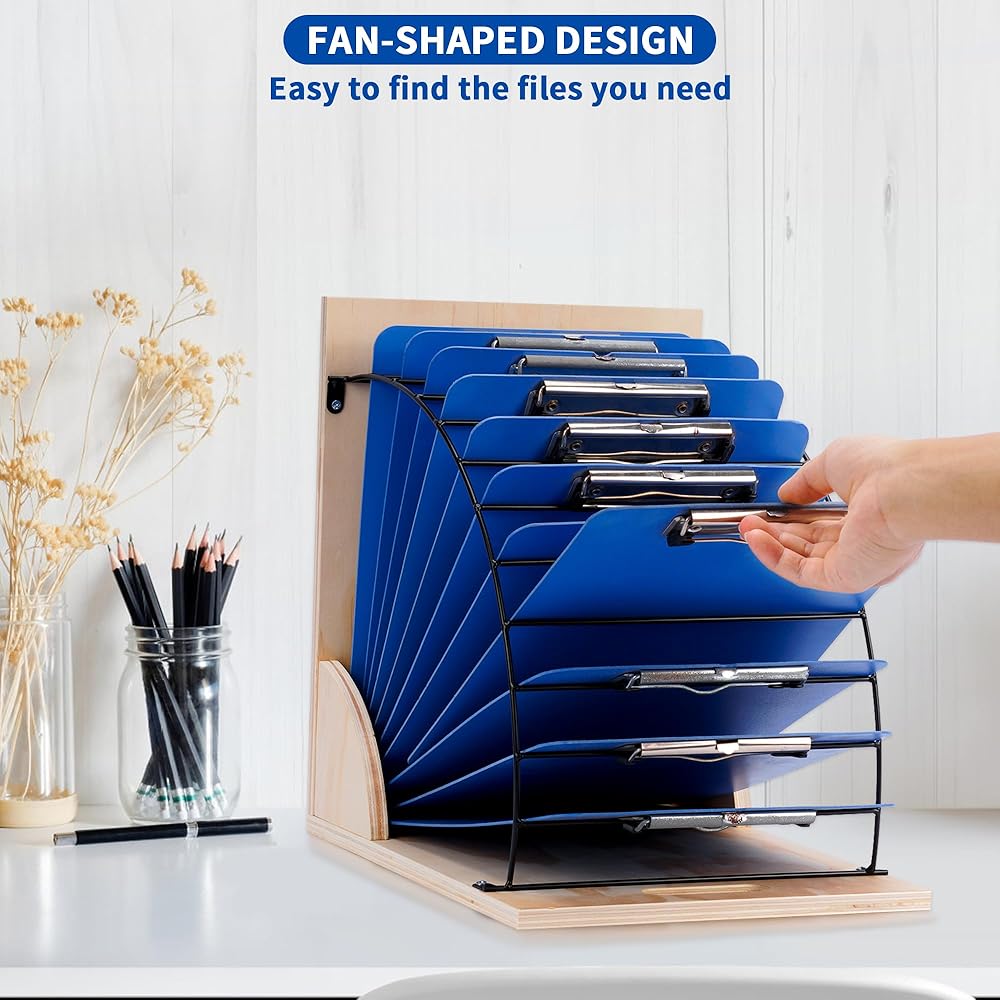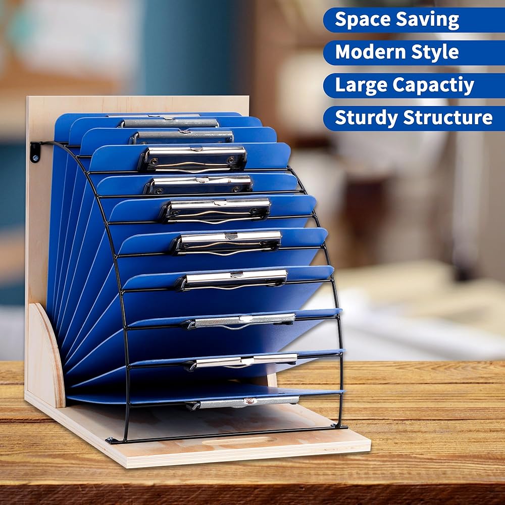 حامل حافظة من Yeshine، رف منظم للحافظة للفصول الدراسية، حامل تخزين لوحي محمول من الخشب والمعدن لمكتب المدرسة والمكتب، سهل التجميع، قم بتحويل مساحة العمل الخاصة بك