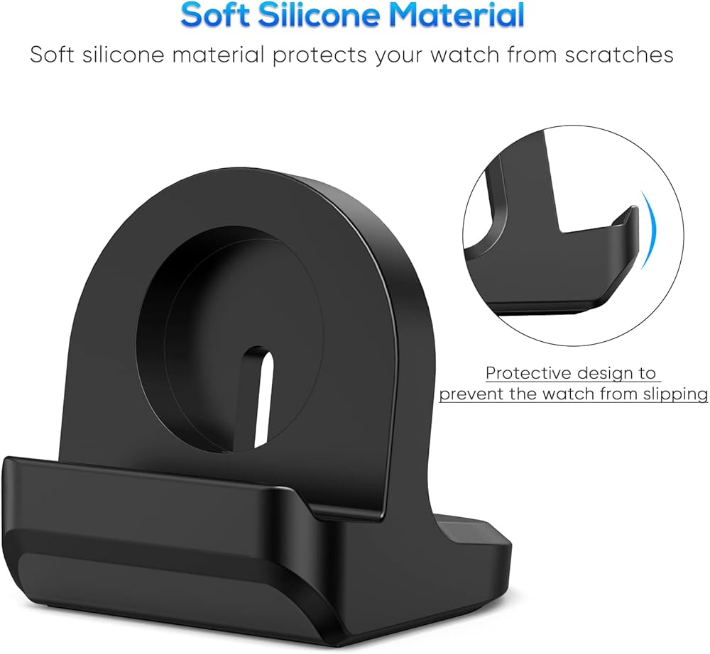 حماية السلامة: يمكن لقاعدة شحن السيليكون المتينة تثبيت ساعتك بشكل آمن في مكانها. يساعد حامل الساعة 5 pro المتميز في الحفاظ على ساعتك خالية من الخدوش ويمنع الحامل من الحركة أثناء الاستلقاء على السطح.