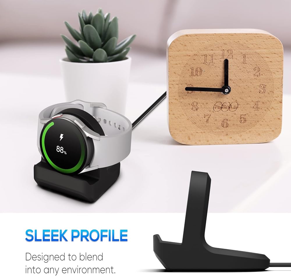 مادة متقدمة: حامل ساعة galaxy 6/6 Classic/5 pro مصنوع من مادة سيليكون عالية الجودة غير قابلة للانزلاق، قوية ومتينة، يمكنها منع الساعة من الانزلاق عن طريق الخطأ، وتحافظ على شحن الساعة باستمرار.