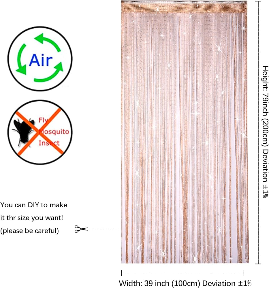 ✔️ستارة باب محدثة: مصنوعة من البوليستر بنسبة 100%، وتوفر الخصوصية ودوران الهواء، مما يعزز بيئة داخلية منعشة وصحية. مزينة بشرائط فضية متلألئة، وتشع بريقًا آسرًا، وتنضح بسحر رقيق ورائع ورائع تمامًا.