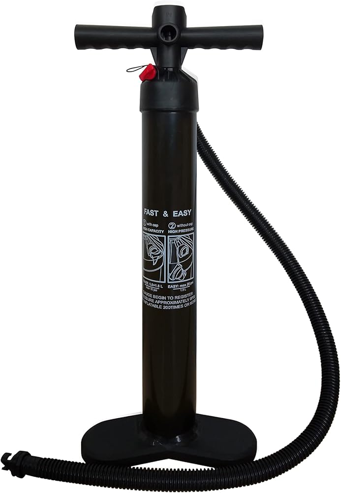 قم بعمل قصير من نفخ SUP الخاص بك باستخدام هذه المضخة ذات الحجم الكبير والمزدوجة الحركة. تعمل المضخة المزدوجة على ضخ الهواء لأعلى ولأسفل لتملأ اللوحة الخاصة بك في نصف الوقت